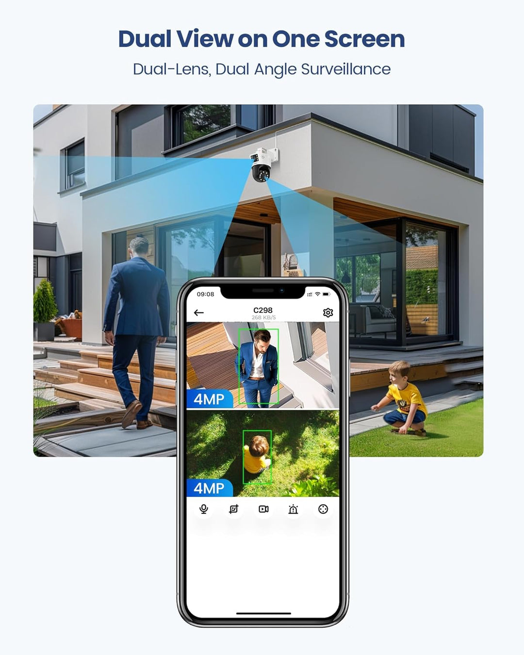 - 𝟰+𝟰𝗠𝗣 𝗦𝘂𝗽𝗲𝗿 𝗛𝗗 𝘂𝗻𝗱 𝗳𝗮𝗿𝗯𝗶𝗴𝗲 𝗡𝗮𝗰𝗵𝘁𝘀𝗶𝗰𝗵𝘁: Erleben Sie gestochen scharfe Bilder in super HD Qualität mit unserer schwenkbaren Kamera C298. Sie verfügt über
