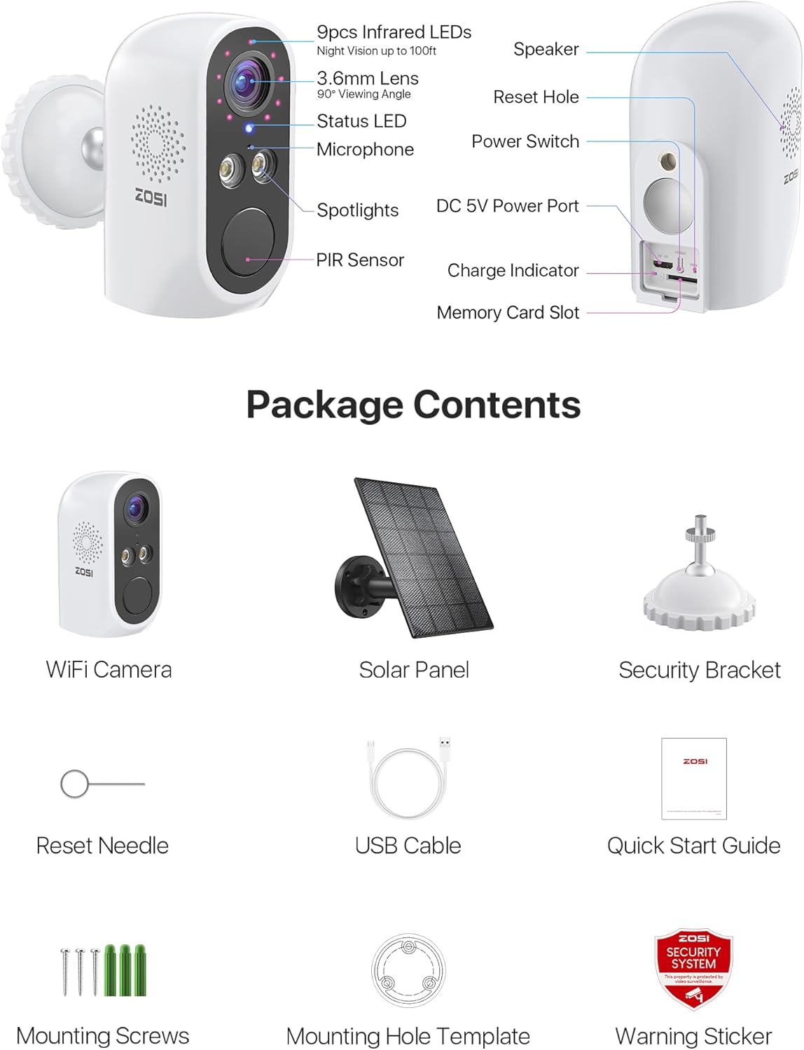- 100% kabellose Sicherheitskamera: Mit dem wiederaufladbaren Akku und WiFi-Verbindung kann diese Funk Überwachungskamera überall ohne komplexe Verkabelung eingestellt werden. (Unterstützt nur 2,4G WLAN).