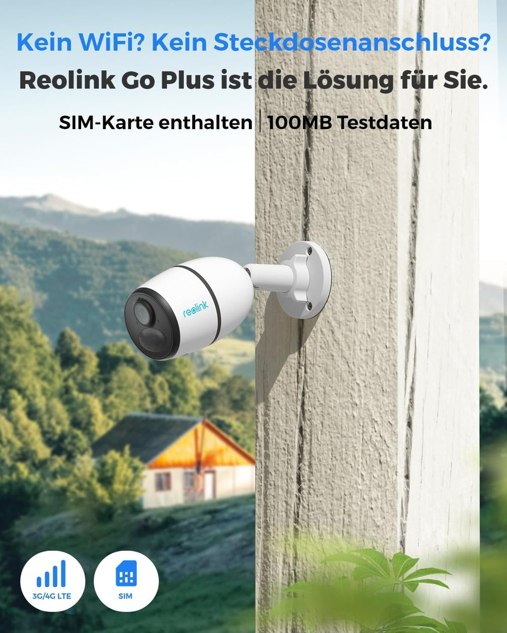 Reolink Go Plus 3G/4G LTE Überwachungskamera Aussen Akku, 2K 4MP HD mit SIM-Kartenslot, Personen-/Au