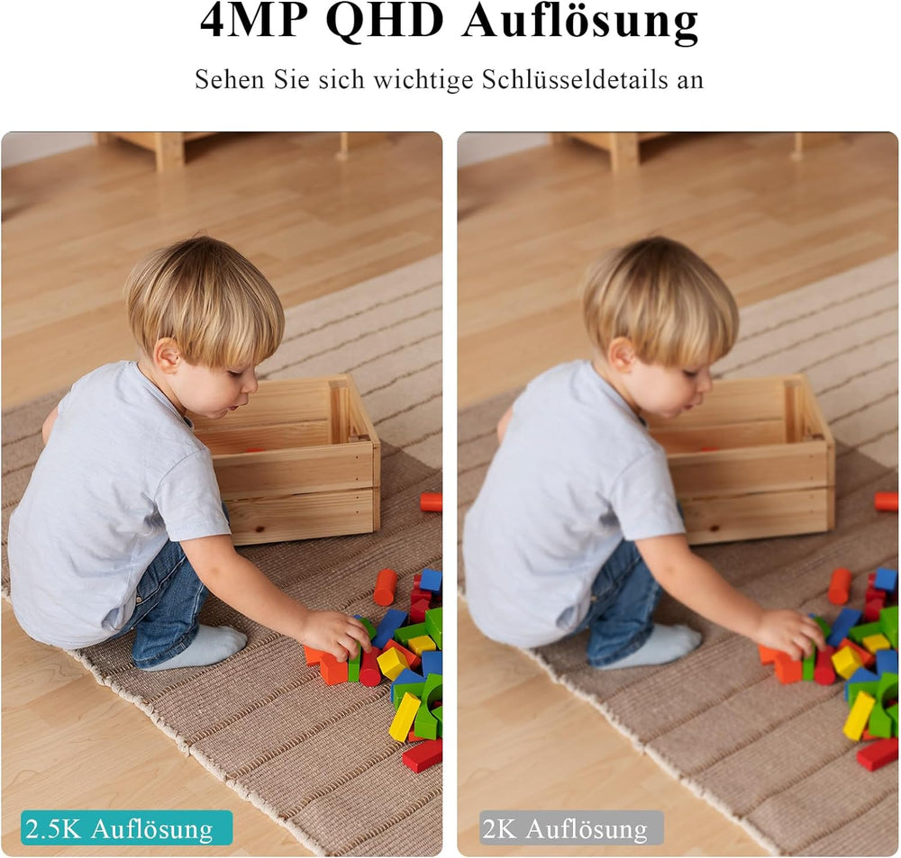 WUUK 4MP/2.5K Überwachungskamera Innen mit Magnetischem Standfuss, WLAN IP Kamera Überwachung Innen,