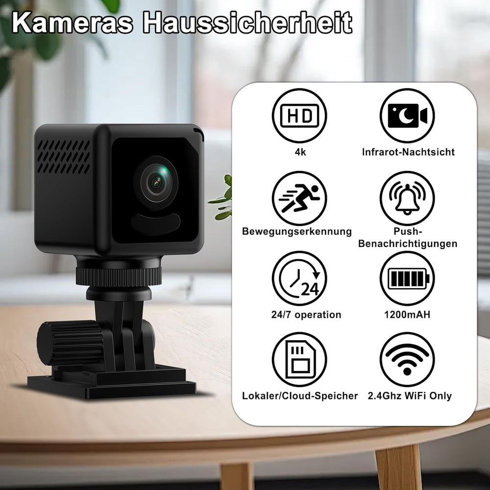 XNJ Mini WLAN Kamera, 4K HD Überwachungskamera 180° drehbarem Objektiv, Remote Viewing für Sicherhei