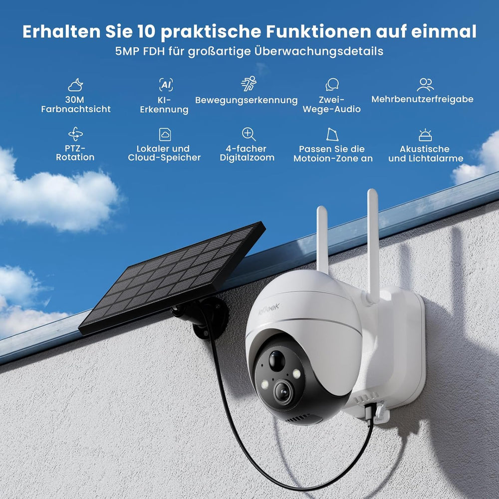 ieGeek 5MP Überwachungskamera Aussen Akku, PTZ Überwachungskamera Aussen WLAN mit Solarpanel,PIR-Bew