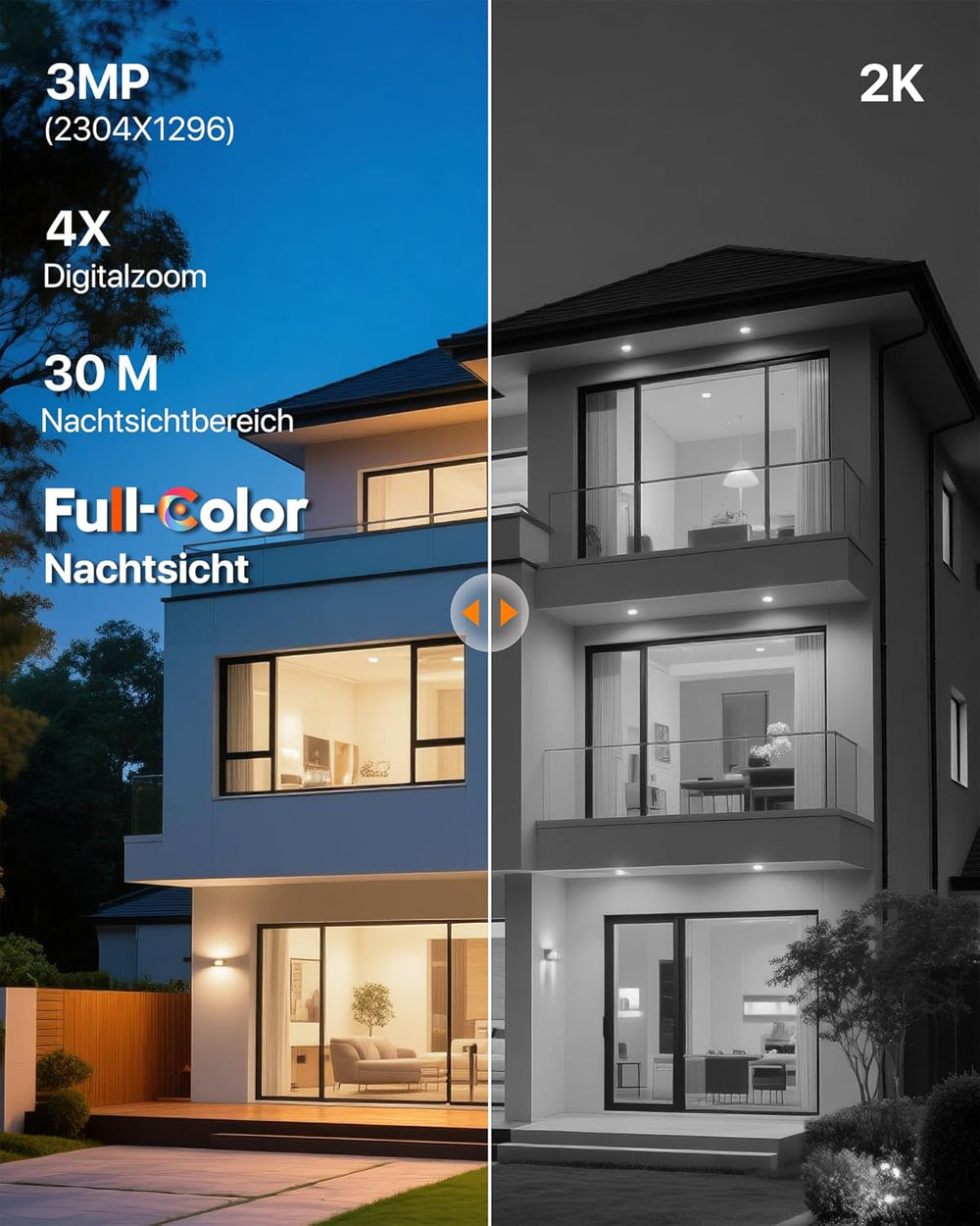 ANBIUX 2K Überwachungskamera Aussen/Innen,Kamera überwachung innen mit Farbige Nachtsicht,Mini Kamer