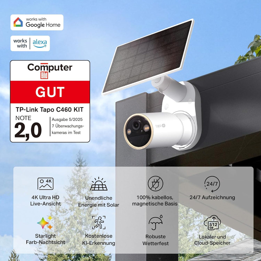 Tapo C460 KIT 4K 8MP Solar Überwachungskamera Aussen Akku, Starlight-Farb-Nachtsicht, Dual-Band WLAN