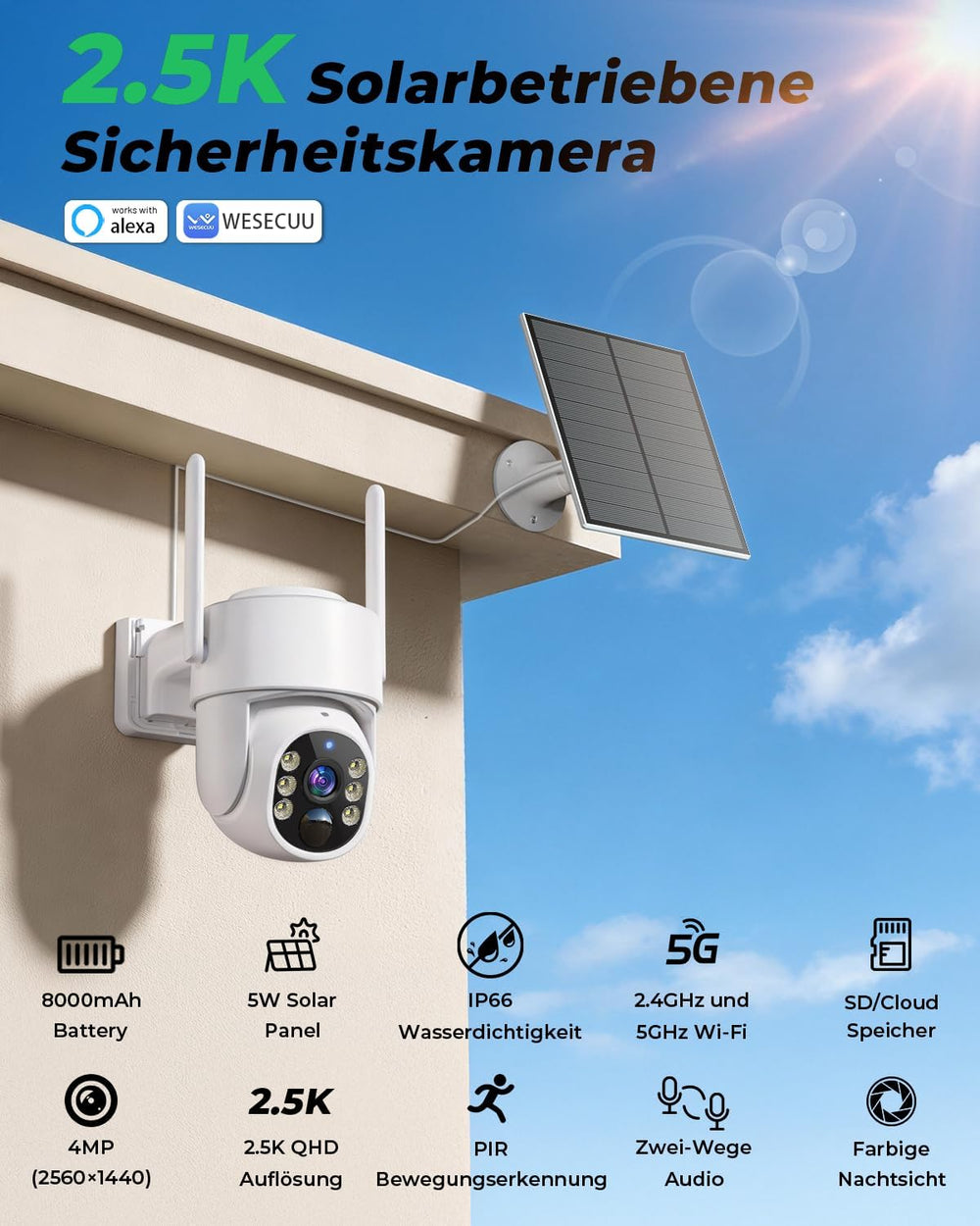 2K Überwachungskamera Aussen Akku, Kostenloser Cloud-Speicher, 5GHz, 2,4GHz WLAN Kabellose Überwachu