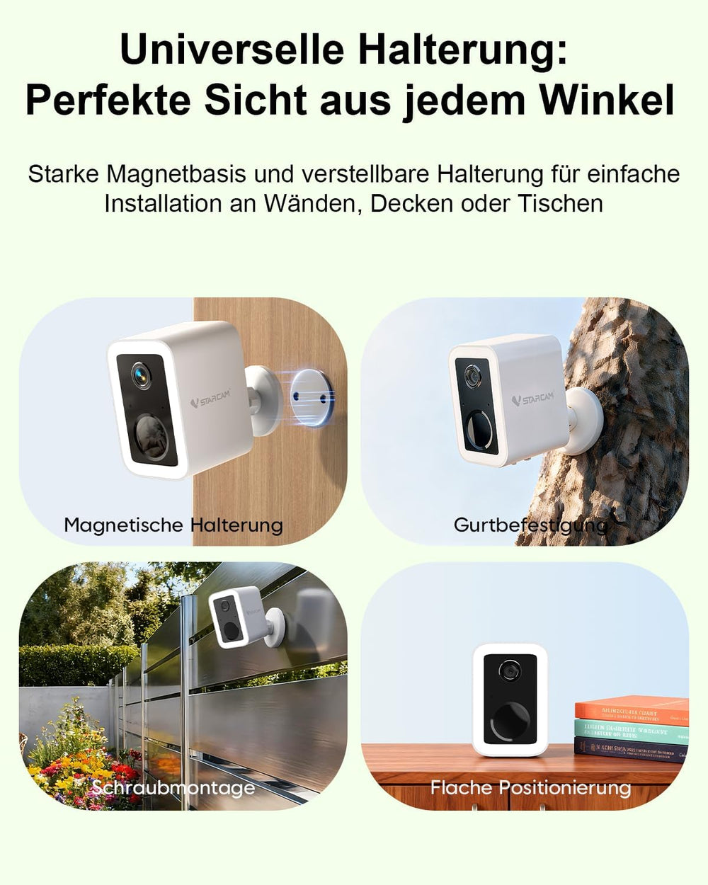VSTARCAM 2K Überwachungskamera aussen & innen, Magnetische Halterung, Kostenloser Cloud-Speicher, Sp
