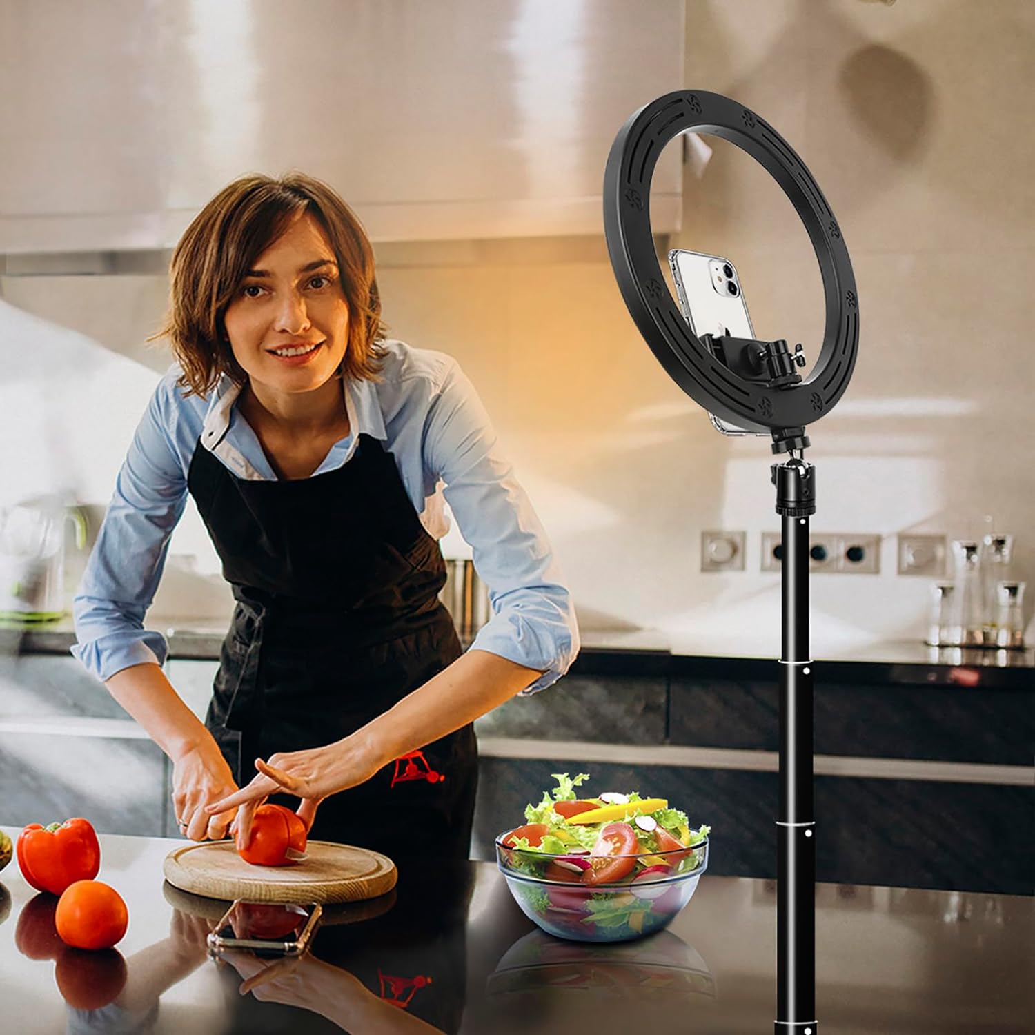 - 【Grosses Ringlicht】 diesem Kreislicht herauszuholen. Der Telefonclip kann auf 3.9 Inch (10cm) verlängert werden. Es ist mit den meisten Smartphones mit oder ohne Hülle kompatibel. Und mit dem Telefonclip können Sie Ihr Telefon horizontal oder vertikal installieren.