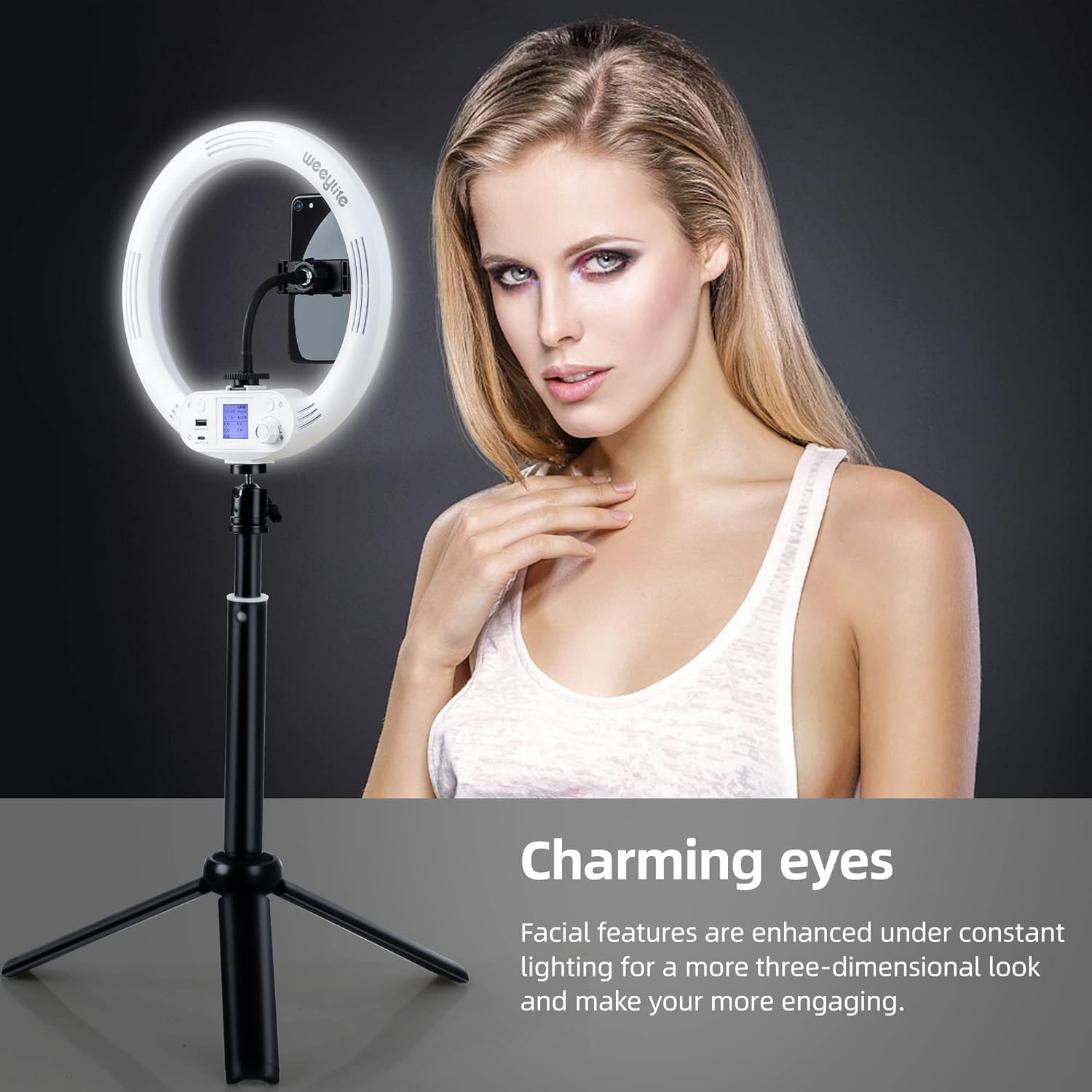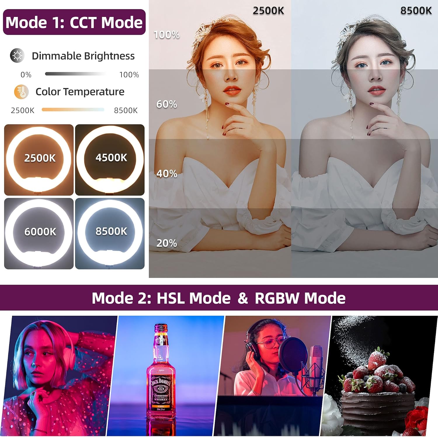 - Dimmbare 26cm, 132 teilige LED Lampen (44 Warm+44 Kalt+44 RGB) für eine höhere Helligkeit und eine breitere Aufnahme als andere, keine Schatten. Mit einem Taschenformat Bluetooth Fernauslöser können Sie Ihr Handy oder Kamera bis zu 10 Meter lang