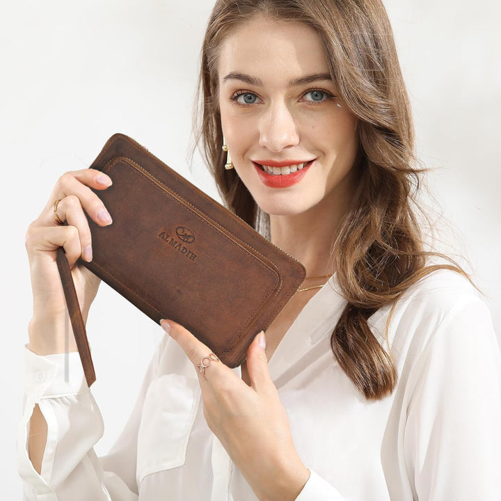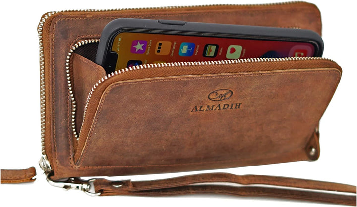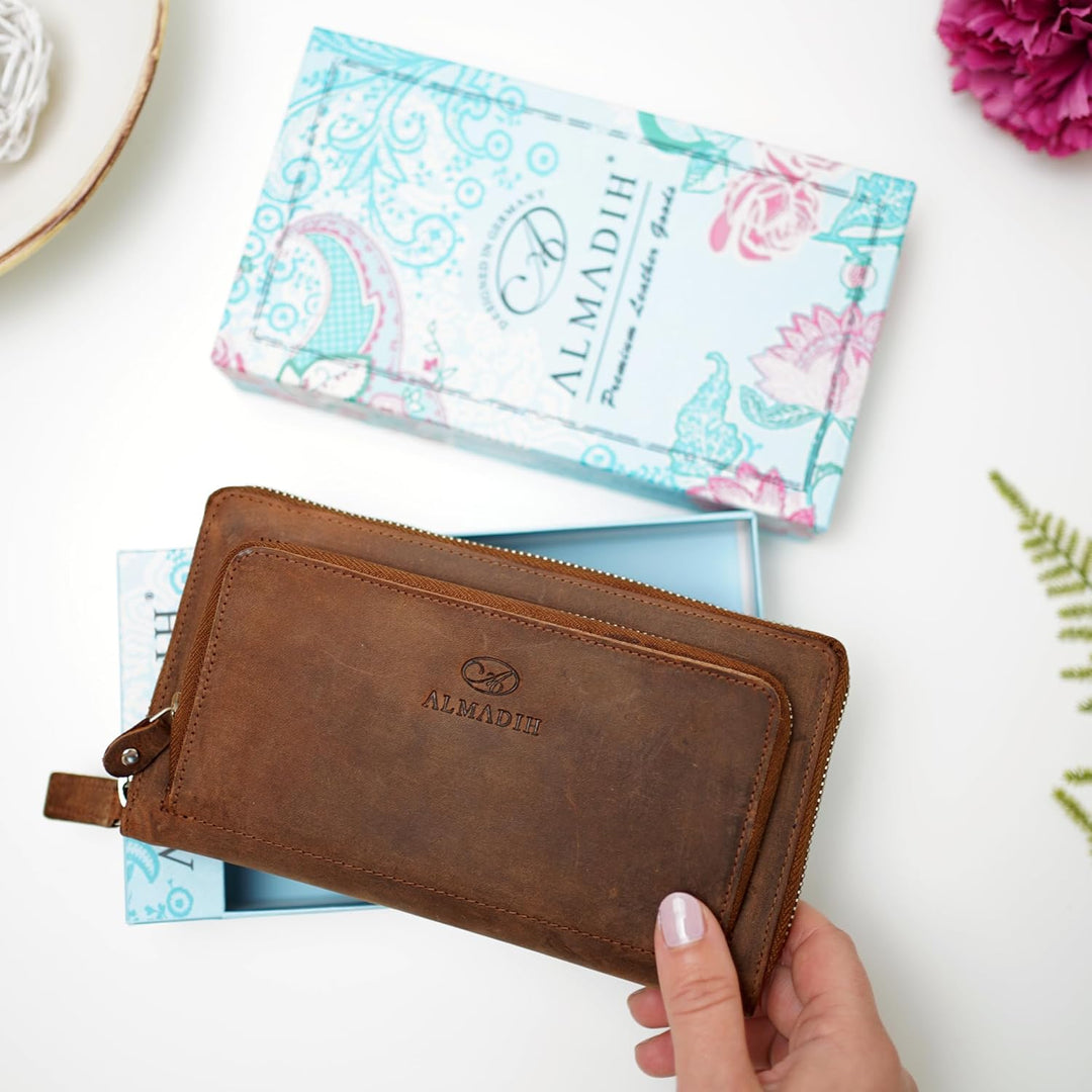 - ✔ Das wunderschöne Damen Portemonnaie besteht aus 100 % echtem Rindsleder. Der Vintage Look des Geldbeutels sorgt jederzeit für einen stilvollen Auftritt und passt perfekt zu anderen ALMADIH Produkten wie den Ledertaschen, Aktentaschen, Leder