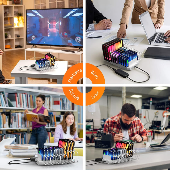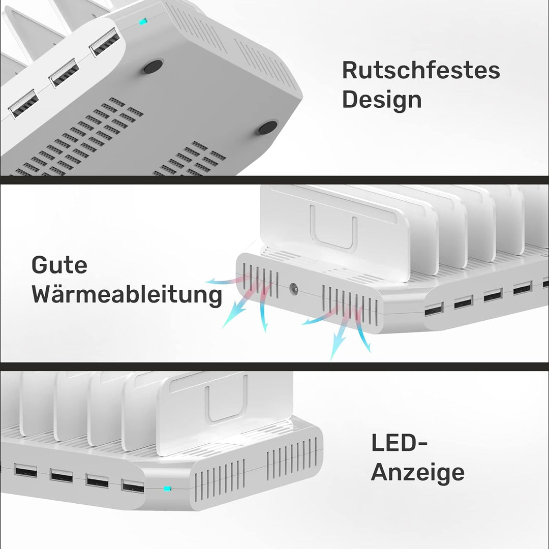 - 【DETACHABLE DIVIDER】Die 10 Port USB Ladestation MehrfachSchallwand ist abnehmbar und kann auf Reisen für einfache Portabilität entfernt werden. Sie ist so kompakt, dass sie nicht zu viel Platz wegnimmt, wo immer Sie sie verwenden.