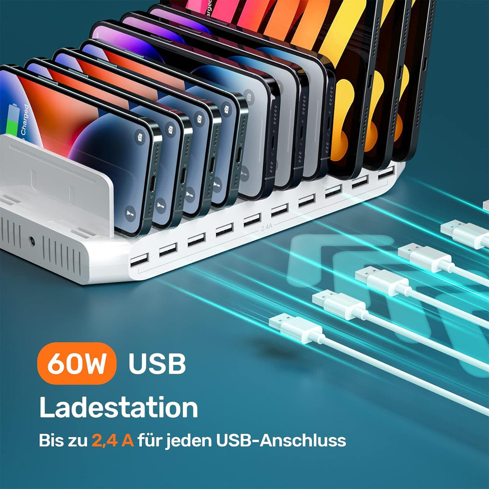 - 【Was wir bieten】1*60W 10 Ports Tablet Ladestation,1*Netzteil,11*Teiler,1*Netzkabel.24 Stunden E-Mail-Support, wir sind bereit, Ihnen zu dienen.