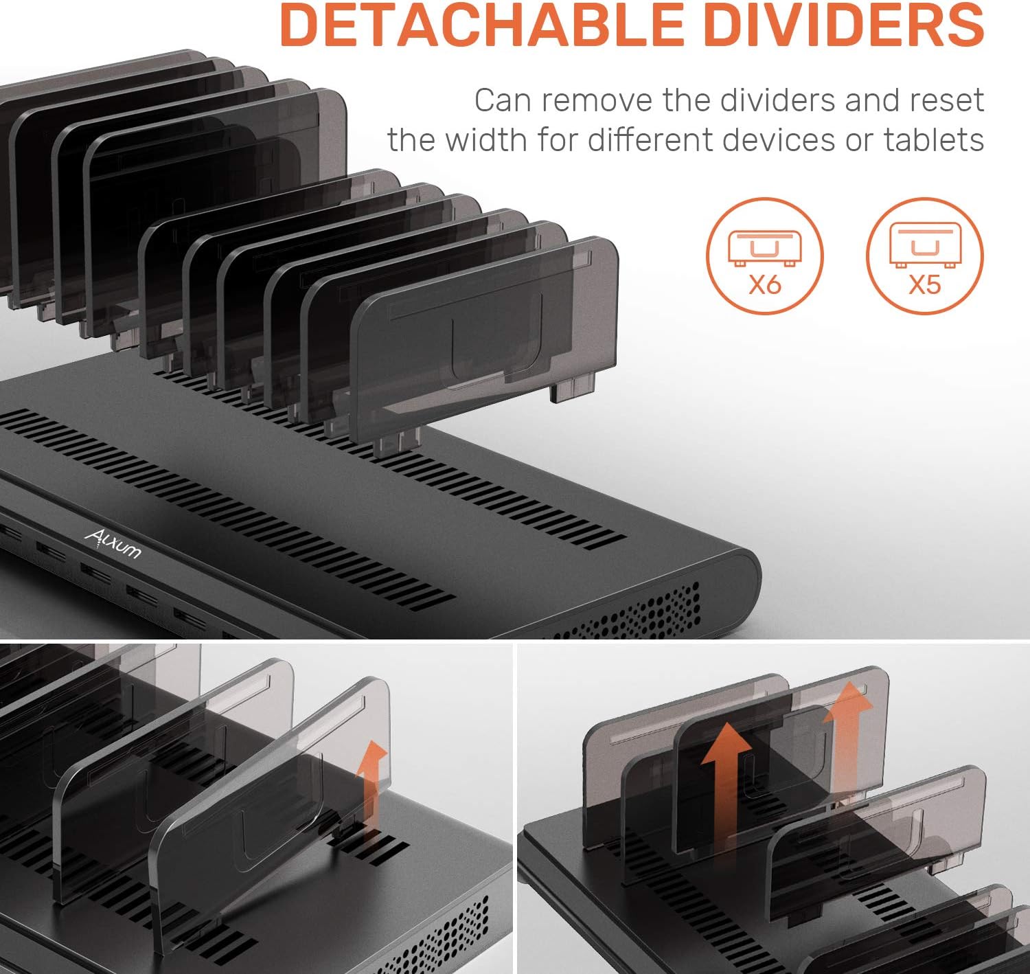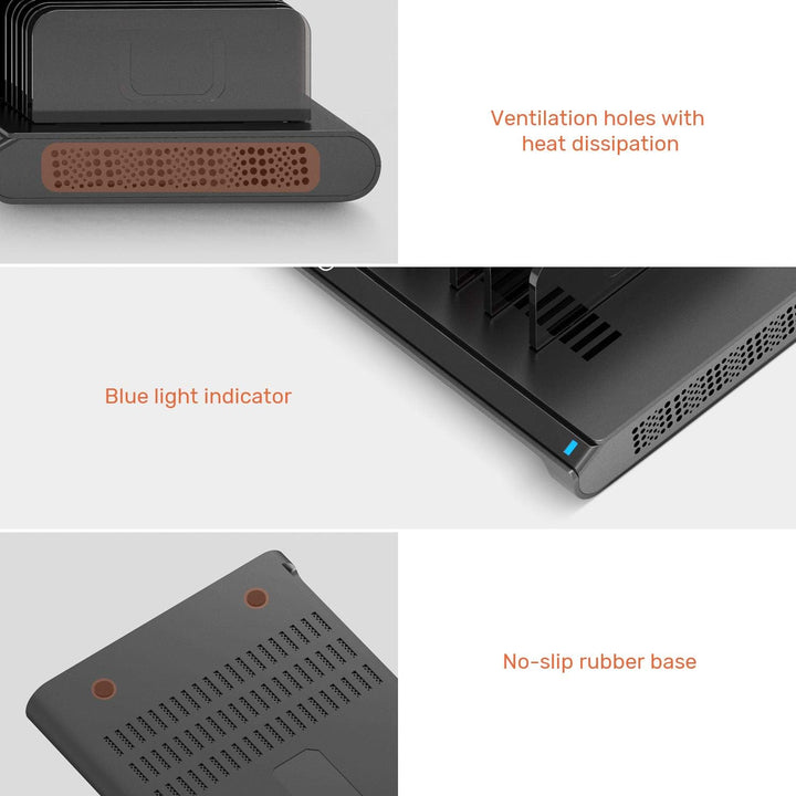 - Abnehmbare Trennwände: Hochwertige abnehmbare Trennwände ermöglichen eine flexiblere Auswahl des Abstands nach Ihren Wünschen. Sie können die Trennwände entfernen und nach Bedarf für Geräte oder Tablets mit Hochleistungsgehäuse zurücksetzen.