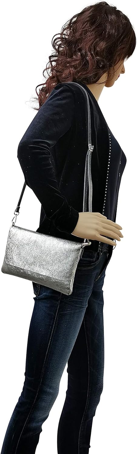 PRODUKTBESCHREIBUNGEN Italienische handgefertigte Damen Umhängetasche, Clutch, Handytasche aus weichem, strapazierfähigem Leder. Praktisch für unterwegs, wenn Sie keine grosse Handtasche dabei haben möchten, können Sie in dieser kleinen, schönen Tasche ganz einfach Ihr Smartphone, Ihre Schlüssel und kleine Gegenstände aufbewahren. Robustes echtes Leder - ein Hauptfach mit Reissverschluss - mit einer Überschlag für zusätzliche Sicherheit - Innenmatrial Stoff - innen eine seitliche Tasche mit Reissverschluss - silberfarbene Metallteile - abnehmbarer Schultergurt. Aussenmasse (leer): ca. Länge 24 cm x Höhe 14 cm x Breite 2 cm. Schultergurt verstellbar ab ca. 60 - 120 cm. Ungefähres Gewicht. 0,2 kg. Ambramoda ist eine eingetragene Marke. Die Farbe kann aufgrund unterschiedlicher Anzeigen und Farbauflösungen oder Monitoreinstellungen von der Bildfarbe abweichen. Eine korrekte und genaue Darstellung der Farben ist über das Internet nicht möglich.