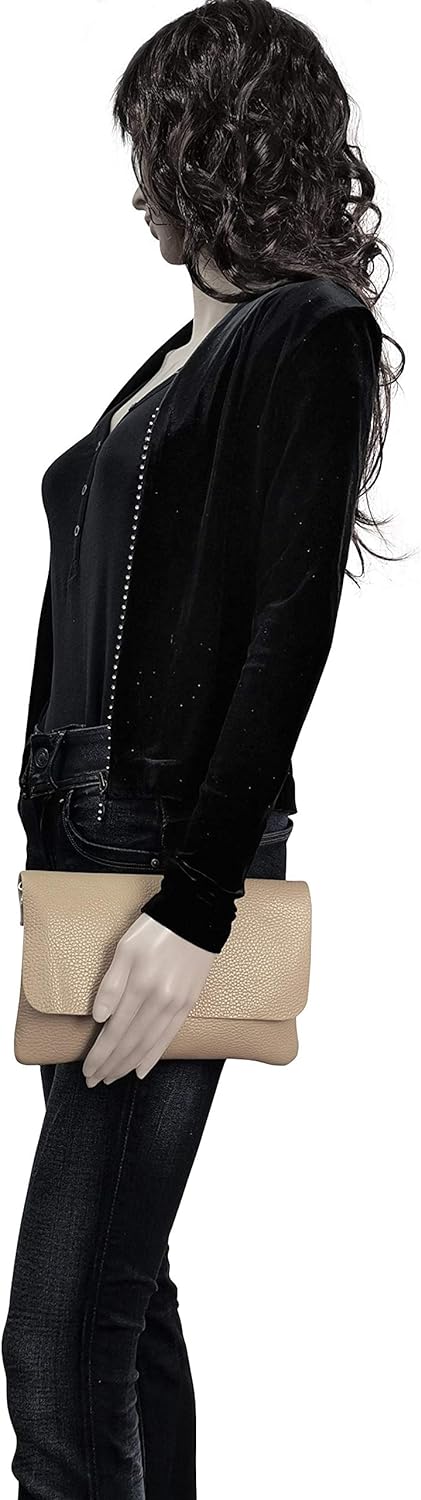 AmbraModa GLX11 - Damen Umhängetasche, Clutch, Handytasche aus echtem Leder mit abnehmbarem und vers
