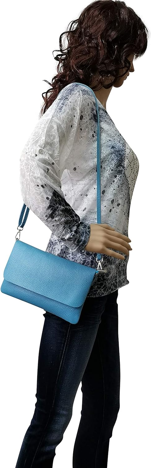 PRODUKTBESCHREIBUNGEN Italienische handgefertigte Damen Umhängetasche, Clutch, Handytasche aus weichem, strapazierfähigem Leder. Praktisch für unterwegs, wenn Sie keine grosse Handtasche dabei haben möchten, können Sie in dieser kleinen, schönen Tasche ganz einfach Ihr Smartphone, Ihre Schlüssel und kleine Gegenstände aufbewahren. Robustes echtes Leder - ein Hauptfach mit Reissverschluss - mit einer Überschlag für zusätzliche Sicherheit - Innenmatrial Stoff - innen eine seitliche Tasche mit Reissverschluss - silberfarbene Metallteile - abnehmbarer Schultergurt. Aussenmasse (leer): ca. Länge 24 cm x Höhe 14 cm x Breite 2 cm. Schultergurt verstellbar ab ca. 60 - 120 cm. Ungefähres Gewicht. 0,2 kg. Ambramoda ist eine eingetragene Marke. Die Farbe kann aufgrund unterschiedlicher Anzeigen und Farbauflösungen oder Monitoreinstellungen von der Bildfarbe abweichen. Eine korrekte und genaue Darstellung der Farben ist über das Internet nicht möglich.