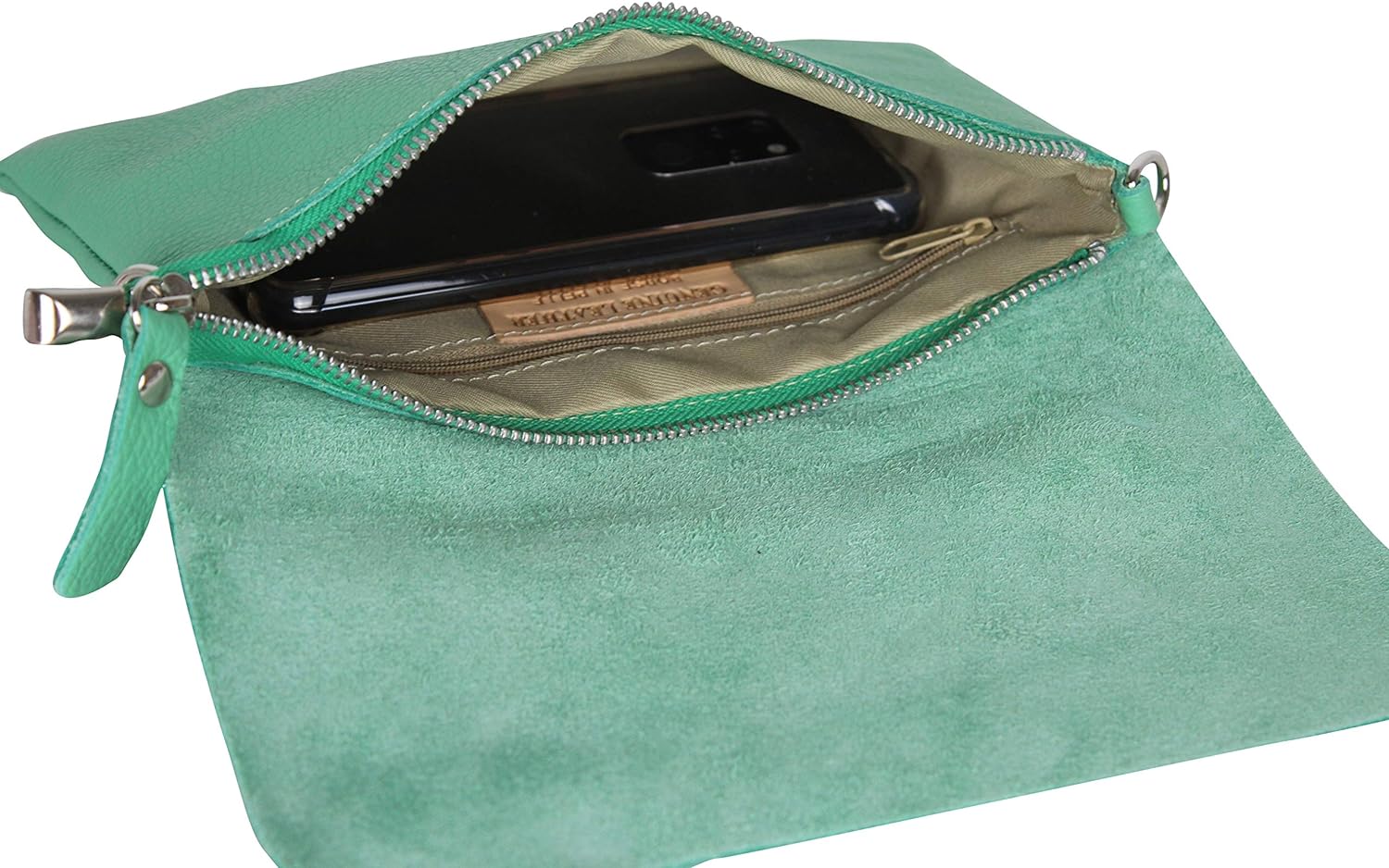 AmbraModa GLX11 - Damen Umhängetasche, Clutch, Handytasche aus echtem Leder mit abnehmbarem und vers