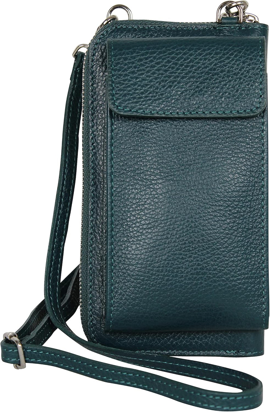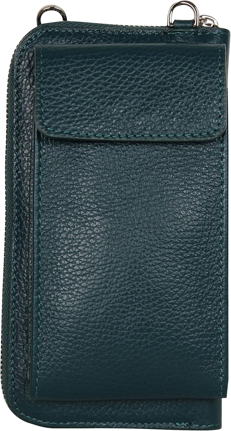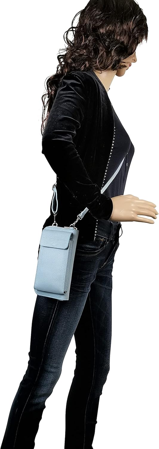 PRODUKTBESCHREIBUNGEN Geldbörse Handytasche Umhängetasche aus echtem Leder. Handytasche auf der Vorderseite mit Magnetverschluss, die für Handys bis 6,5 Zoll ( länge des handy 16,5 cm.) geeignet ist. Die Geldbörse hat Hauptfach mit Reissverschluss. Innen: - 1 Reissverschlussfach für Münzen - 2 Fächer für Bargeld, Karten, Tickets, Reisepass oder andere Kleinigkeiten; 8 Kreditkartenfächer. abnehmbarer und verstellbarer Tragegurt verstellbar von 60 - 115 cm . Eine perfekter Begleiter für den Alltag. ABMESSUNGEN: Die gesamte Grösse: 20 x 11 x 5 cm (L x B x H). Abmessungen Geldbörse. 20 cm x 11 cm x 2,5 cm. Die vordere Handytasche hat abmessungen von 17 x 9,5 x 2,5 cm und geeignet für 6,5-Zoll-Handys ( 16,5 cm ). Wir werden nicht alle Marken und Serien von Handys auflisten, die hinein passen. Ob Ihr Handy hineinpasst, messen Sie einfach Ihr Handy. Gewicht: 285 g Materialien: Robust und strapazierfähigem Rindsleder. Hochwertige Metallteilen. Handgefertigt in Italien. HINWEIS: Farben Senf und Camelbraun haben goldfarberige Metalteilen. Alle andere Farben Taschen haben silberfarberige Metallteile. AmbraModa de ist eine eingetragene Marke.