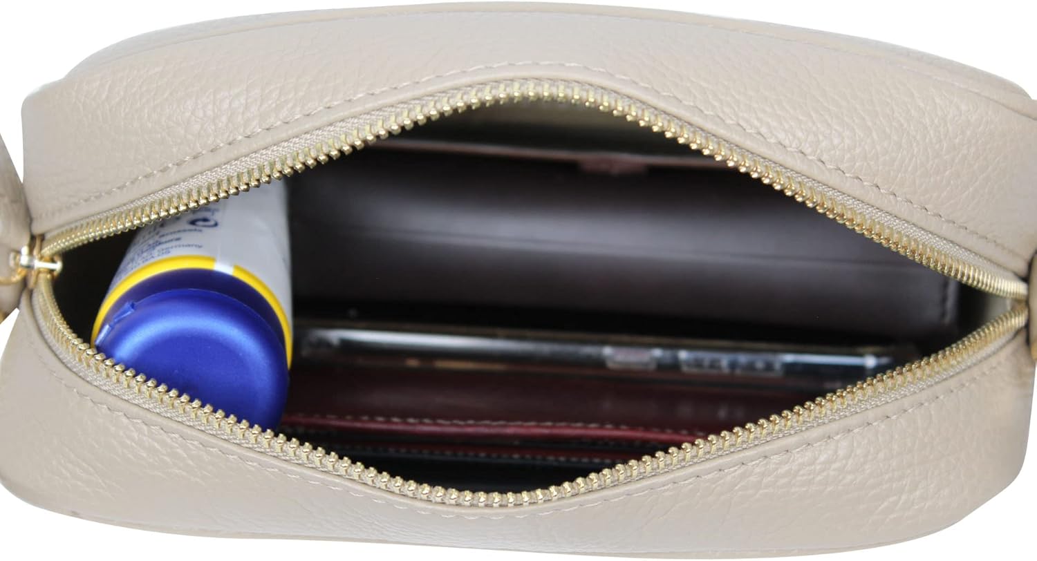 PRODUKTBESCHREIBUNGEN Leichte Schultertasche Umhängetasche Handytasche aus italienischem Rindsleder. Ideale Tasche für den Urlaub, Ausgehen oder für den Alltag. Das geraumiges Hauptfach werd mit Reissverschluss geóffnet. Innen befind eine Reissversclusstasche und ein einsteckfackfach. Die Tasche ist für alle Handys und Tablets bis 8 Zoll geeignet. Aussenmasse der Tasche: Länge 21 cm x Höhe 16 cm x Tiefe 8 cm. Gewicht ca. 330 Gramm. Der abnehmbare Schultergurt ist von 65 cm - 115 cm verstellbar. Metallteile goldfarberig. ***** AmbraModa de ist eine eingetragene Marke.