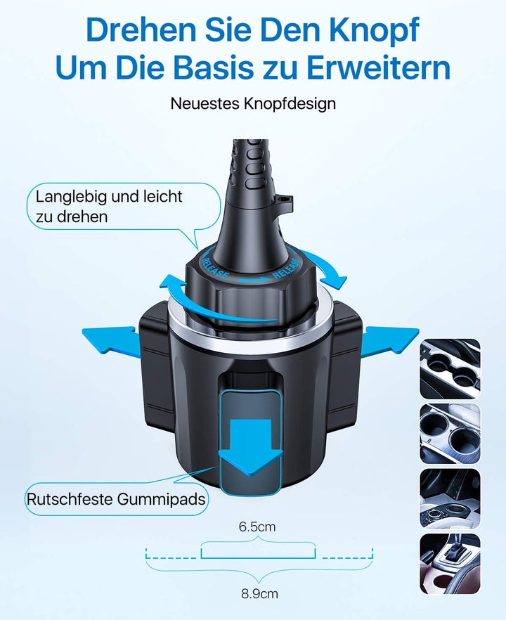 - Neuestes verstellbares Basisdesign: Der andobil Handyhalter Auto Getränkehalter passt den knopfartigen Boden an, der mit rutschfesten Gummipads abgedeckt ist, die perfekt in Getränkehalter mit einem Durchmesser von 6-9cm in Ihrem Fahrzeug passen, und