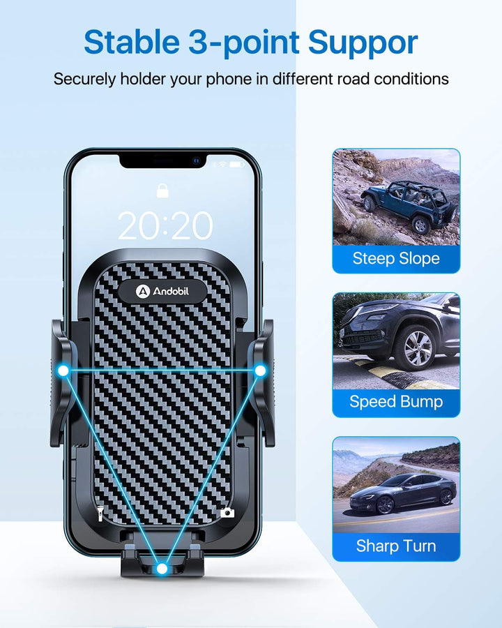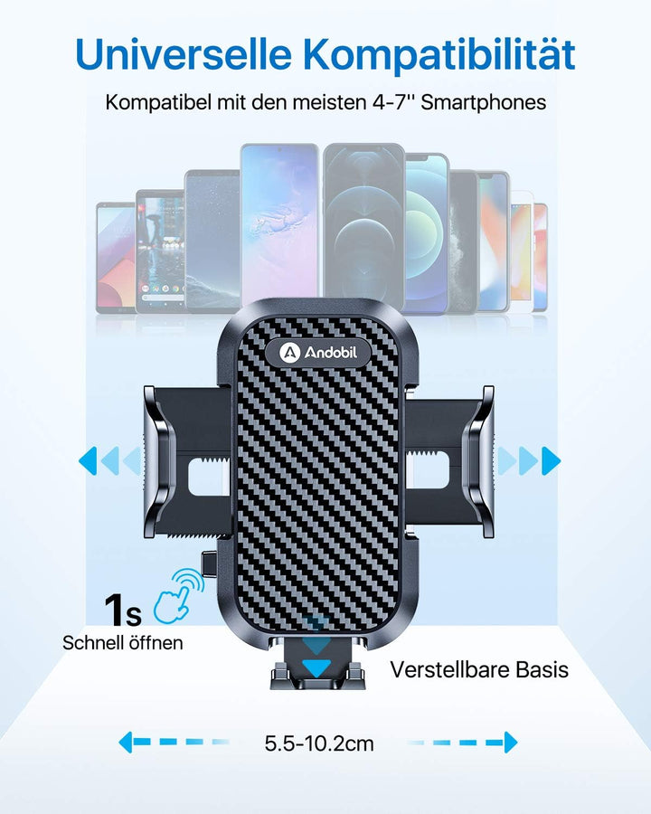 - Einfache One-Touch-Bedienung: Der andobil Auto Handyhalterung hat den Schnellverschlussknopf des Handyhalter verbessert, um das Drücken zu erleichtern, und sein Arm kann innerhalb von 0,1 S schnell geöffnet werden.Hinaus wurden im andobil-Labor