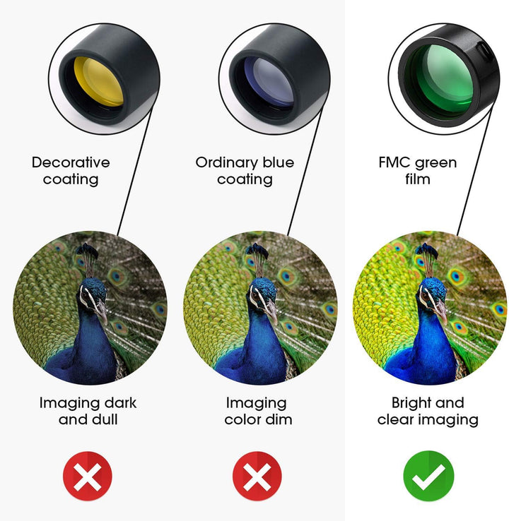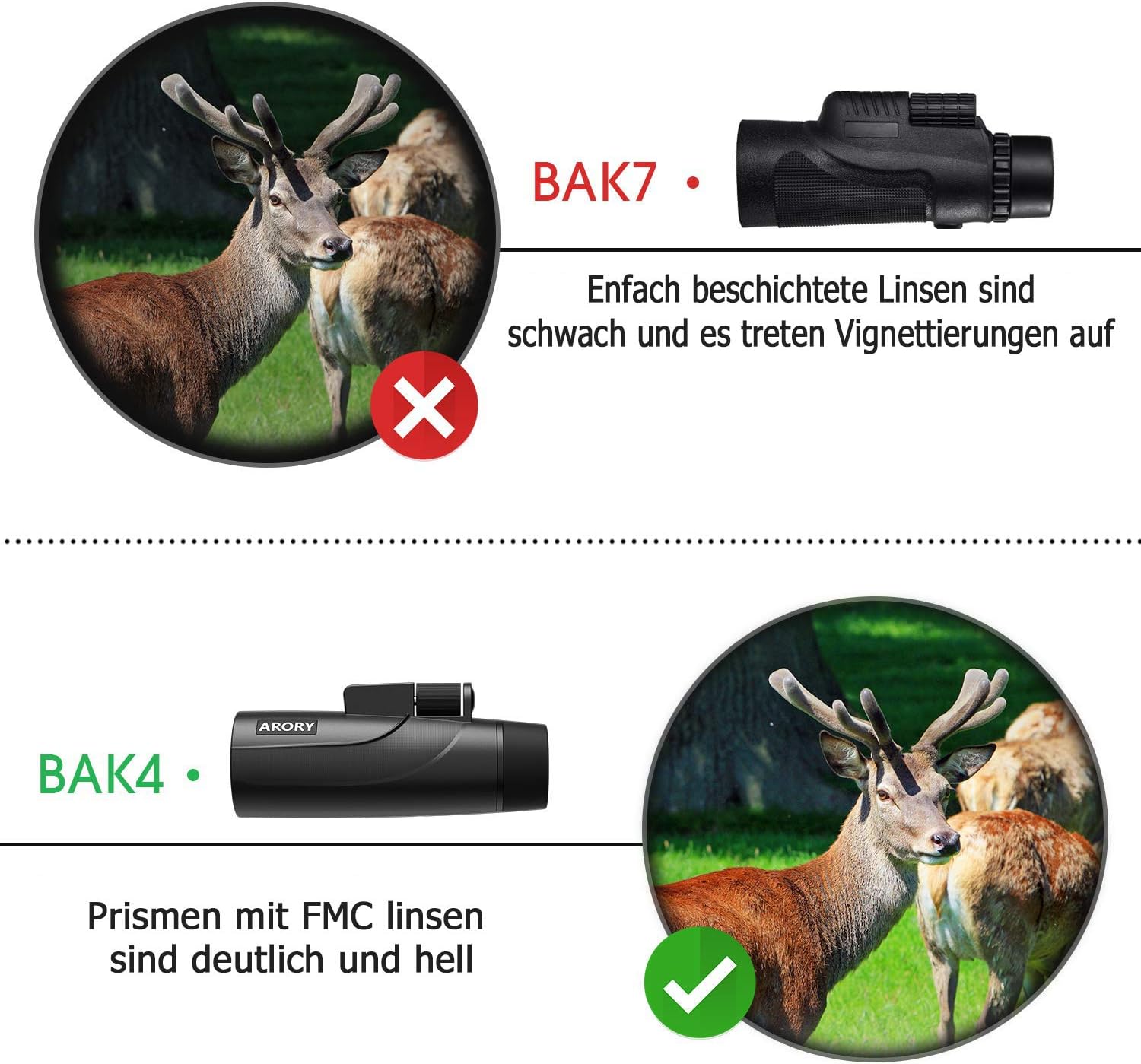 - ✅ Grosse BAK-4 Prismen. Unser Monokular mit BAK4-Prisma und konzentriertem 50 mm breitem grünem Film Objektiv reduziert chromatische Aberration unter extremen Bedingungen. Durch die hohe Lichtdurchlässigkeit werden bis zu 99,8% erreicht.Machen Sie