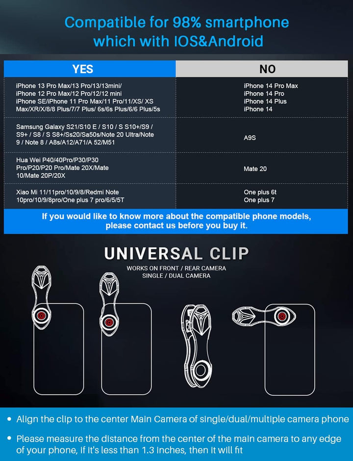 - ☛2in1 Design☚0,63x Weitwinkelobjektiv und 15x Makroobjektiv werden beim Empfang zusammengeschraubt. Wenn Sie das Makroobjektiv verwenden möchten, schrauben Sie bitte das Weitwinkelobjektiv ab.