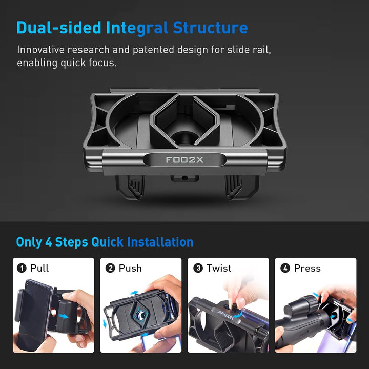 - 【𝐀𝐤𝐭𝐮𝐚𝐥𝐢𝐬𝐢𝐞𝐫𝐮𝐧𝐠 𝐃𝐞𝐬𝐢𝐠𝐧】APEXEL Neu Universal Spektiv Handy Adapter adopt 360 ° Rotation Design, können Handy-Aufnahmen horizontal und vertikal zu unterstützen, reduzieren Sie den Abstand