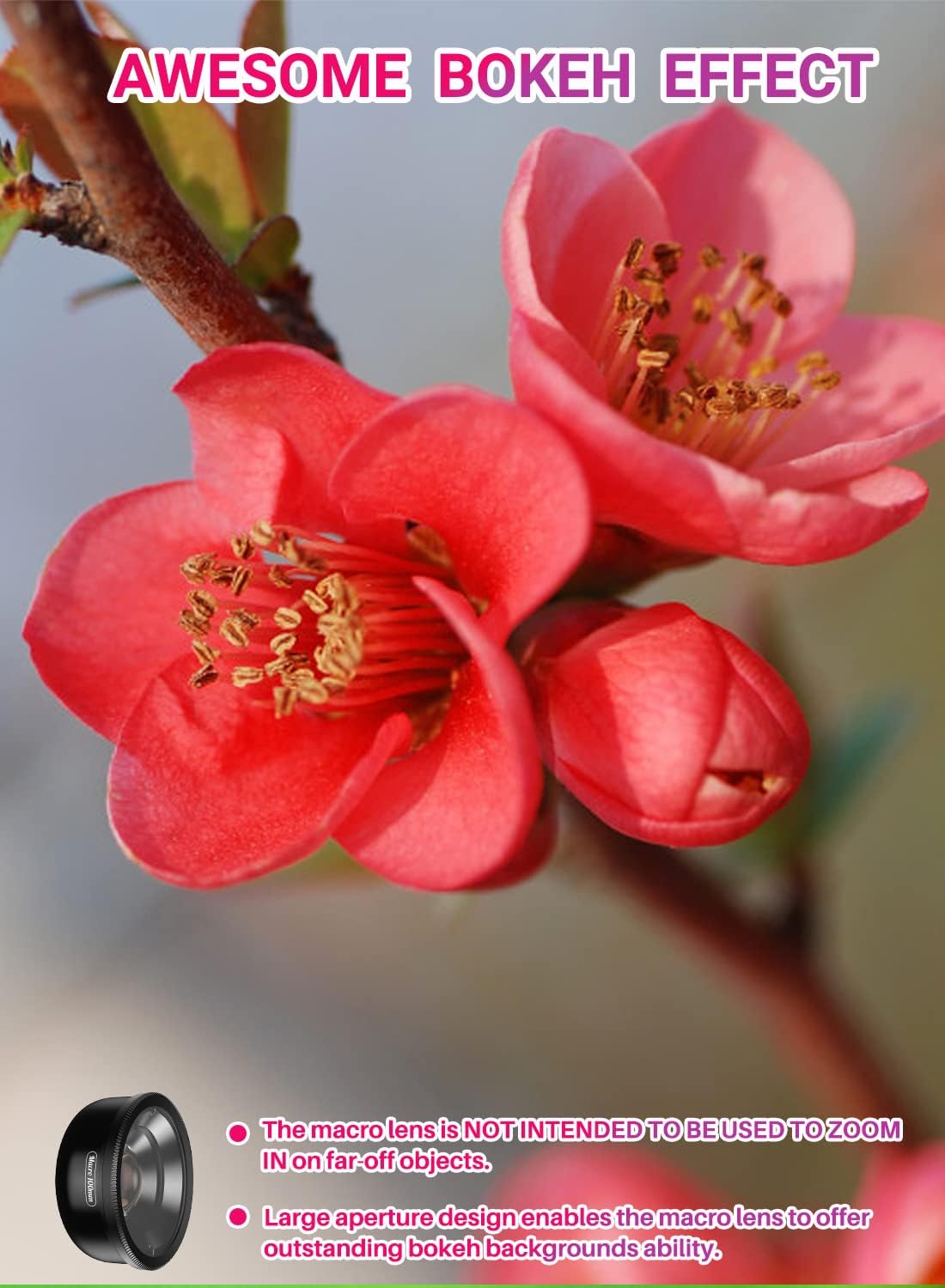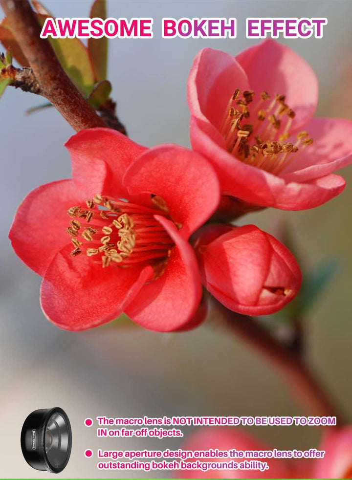 - ❺Warme Tipps zur Verwendung des Kamera-Makroobjektivs➤Es ist ideal für Nahaufnahmen, detailorientiert mit erhöhter Vergrösserung, NICHT FÜR ZOOM auf entfernte Objekte ausgelegt. Der ideale Arbeitsabstand zwischen dem Kameraobjektiv des Telefons