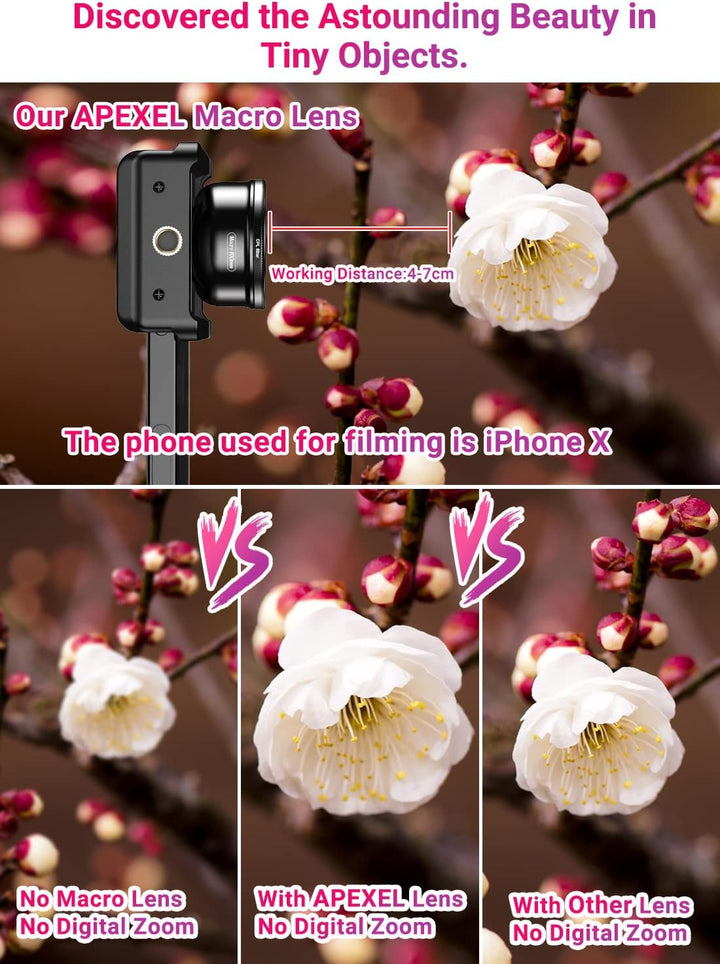 - ❷Why wählen Sie Apexel 100 -mm -Makroobjektiv? ➤As wir wissen, dass professionelles Makroobjektiv erforderlich ist, wenn Sie kleine Objekte mit vergrössertem Detail sehen möchten.Smartphones auf dem Markt. Darüber hinaus wird ein CPL -Filter