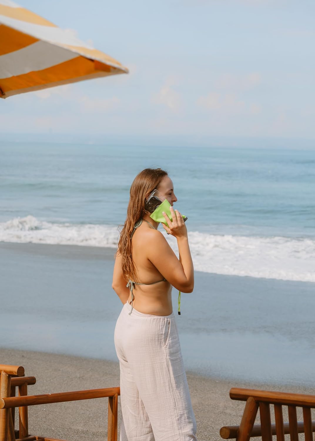 - Die Unterwasserhülle hat ein leichtes Design, das das Tragen beim Schwimmen erleichtert. Die patentierte, ultra-sichere Aquaclip-Dichtung hält Ihr Telefon sicher, mit einem verstellbaren Umhängeband für Komfort. Das Umhängeband kann über die Brust