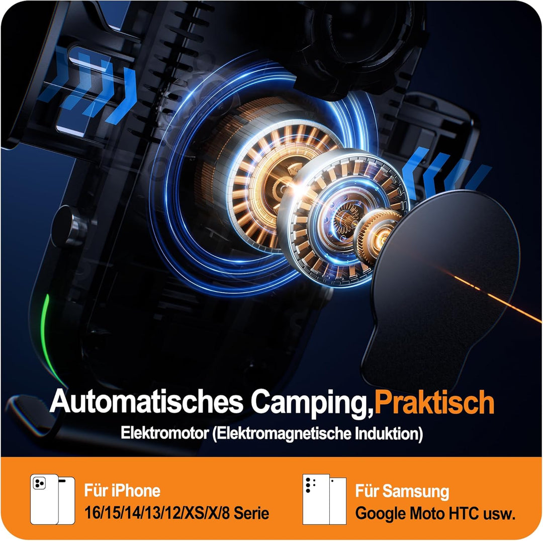 - 🚗【Leichte Abnahme des Handys auch im Stillstand mit dem Superkondensator & Leiser Motor】 Dank dem eingebauten Superkondensator können Sie beim Stillstand des Autos die Klemmarme noch elektrisch öffnen und Ihr Handy leicht herausnehmen. Hinweis: Der Kondensatorbatteriestand genügt nur für zwei- oder dreimalige Einschaltungen.🚗 Der Motor ist von Typ C914 mit der neuesten Technologie, und sein Lärm ist weniger als 20 dB. Zudem wird die Lebensdauer des Motors um 6 Jahre verlängert.