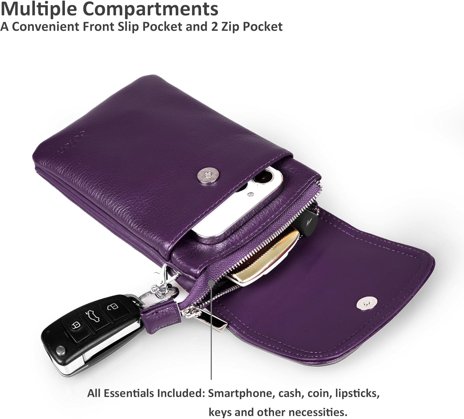 - 【Hervorragende Verarbeitung】 - Handy-Umhängetasche ist aus hochwertigem Yak-Leder gefertigt, weich, strapazierfähig, leicht und schulterfreundlich zu tragen. Handytasche verfügt über hochwertige Metallbeschläge und einen glatten Reissverschluss,