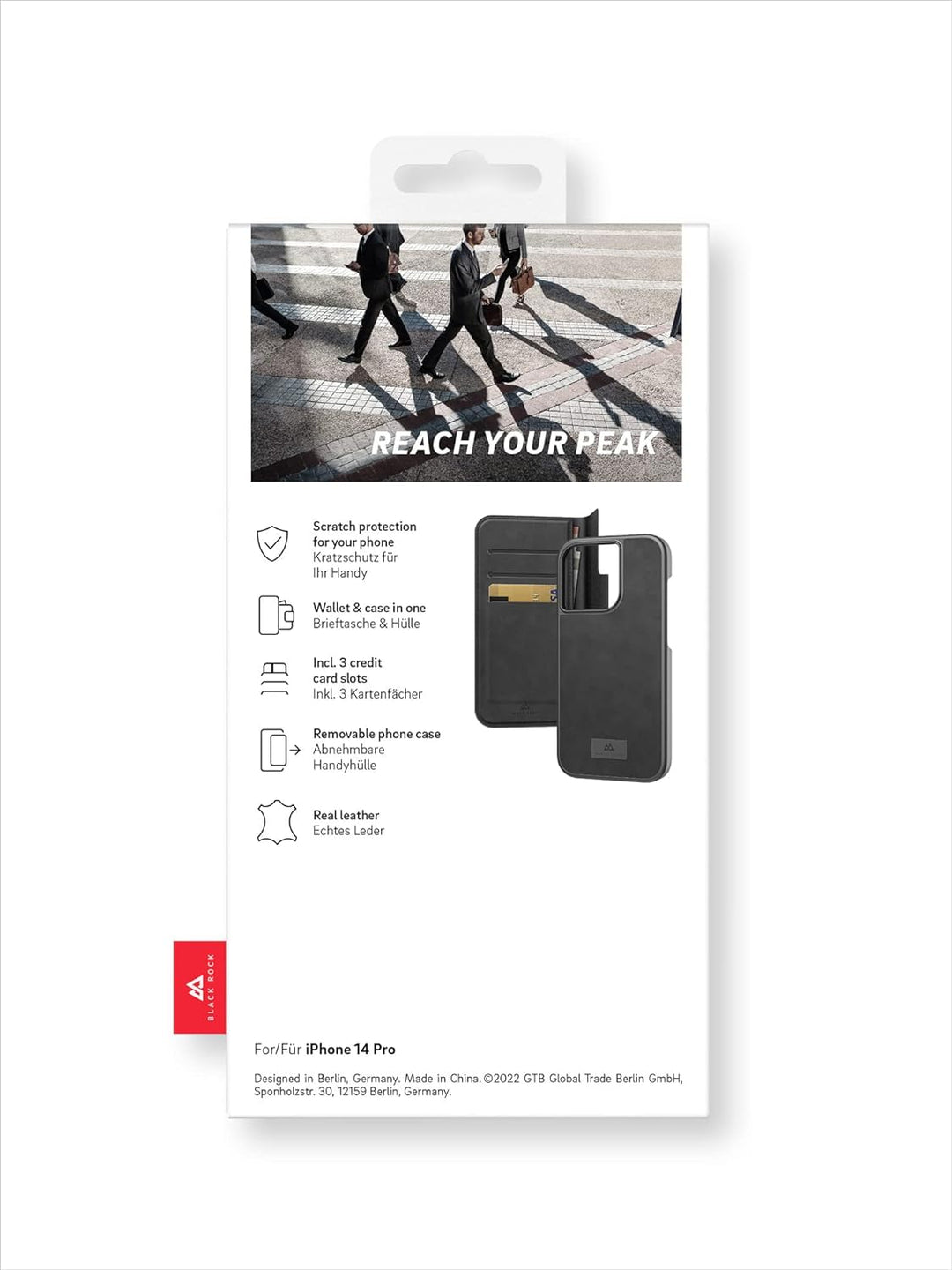 - Premium Leder Wallet, besonders hochwertiges Cover aus echtem Leder, Hülle für das Apple iPhone 14 Pro.