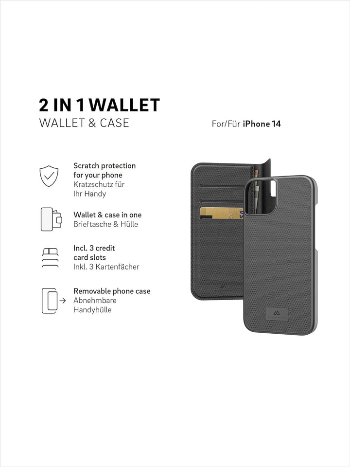 - Hülle mit 3 Kartenfächern und einem Innenfach für Geldscheine: Das Case kann separat vom Wallet genutzt werden und unterstützt kabelloses Laden.