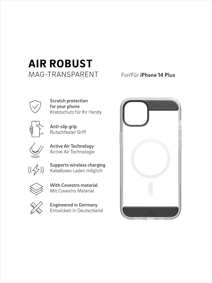 - Magnetisches Aufladen, transparentes Cover, kompatibel mit MagSafe-magnetischem Lade-Zubehör, vergrösserte Schutzzonen für optimierten Aufprallschutz.