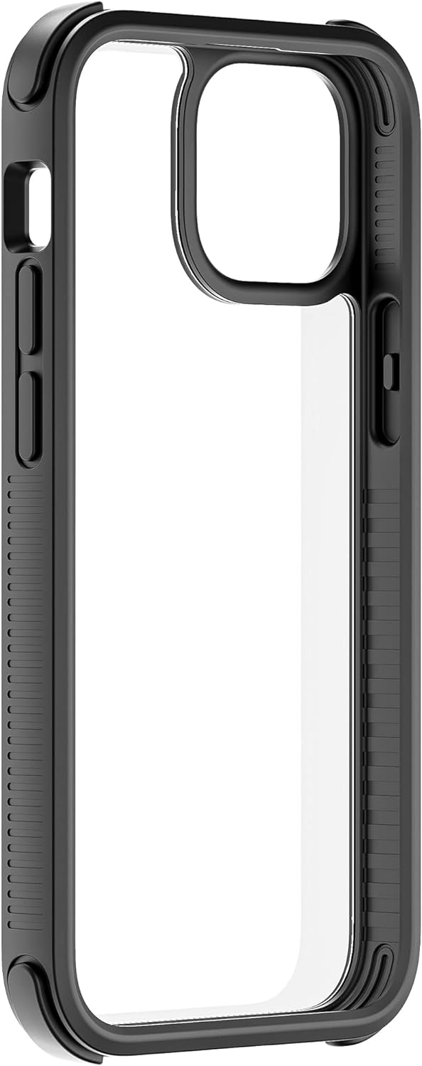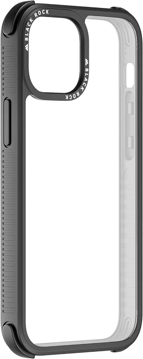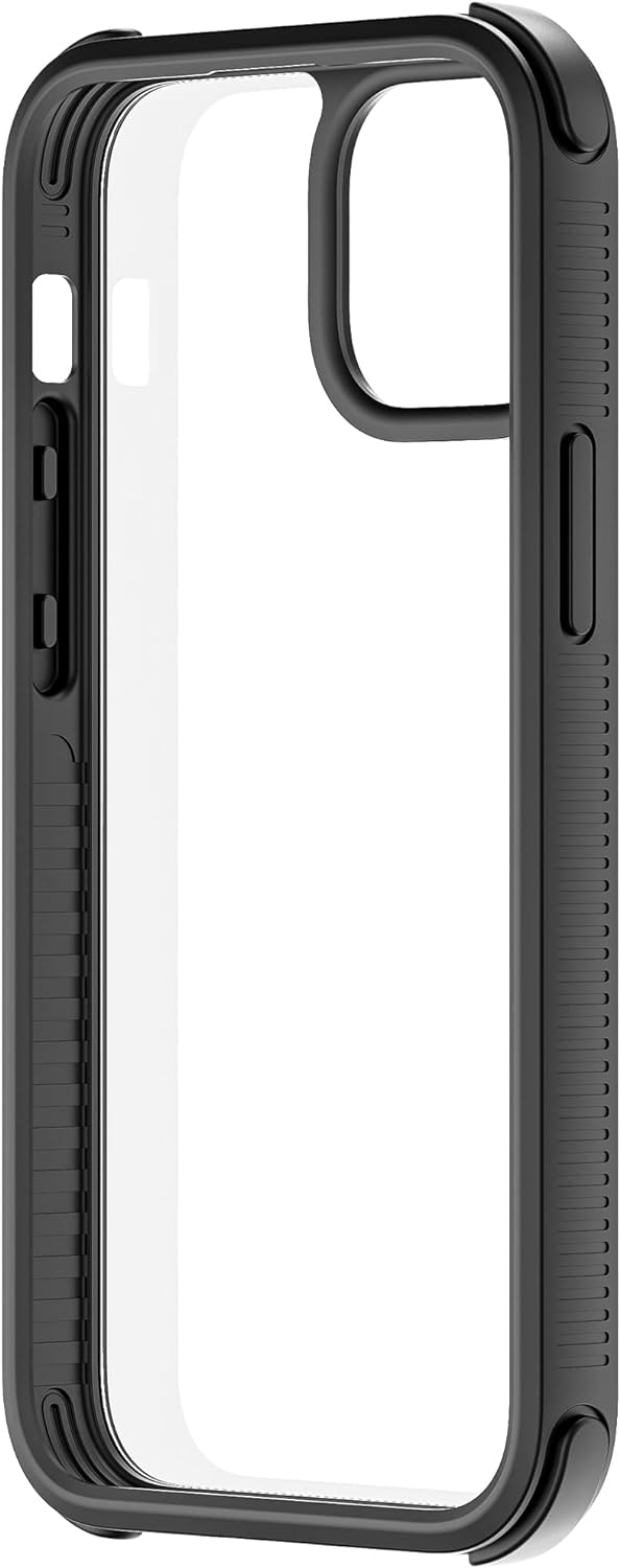 - Transparente Schutzhülle mit schwarzem Rahmen aus Silikon für das Apple iPhone 13 Mini.