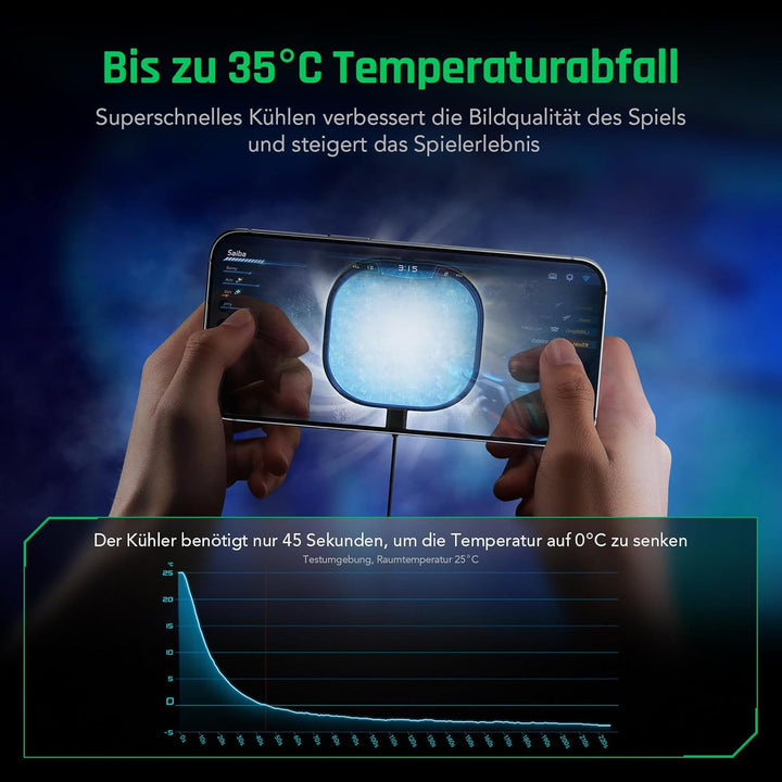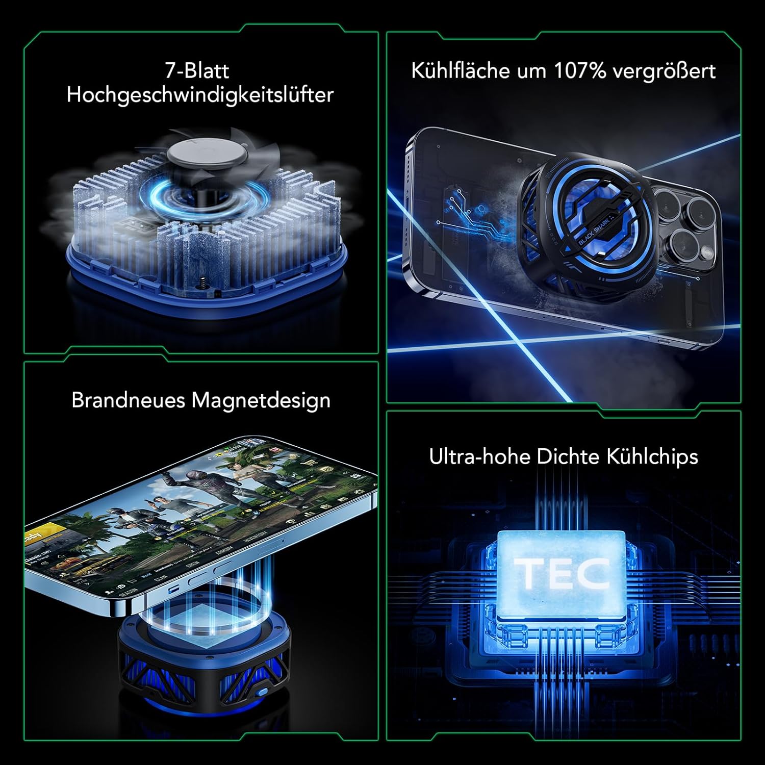 - Intelligente Steuerung: Der magnetische Telefonkühler verfügt über einen NTC-Dual-Schutzmechanismus, er überwacht die Innentemperatur und schaltet sich automatisch ab, wenn die Temperatur > 65 °C oder