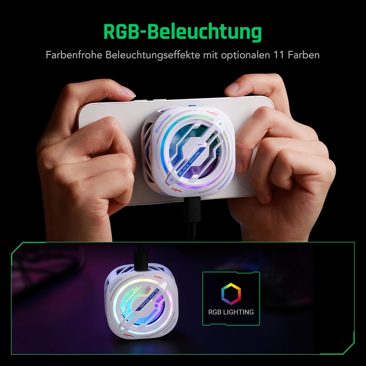 - Super Quiet Phone Radiator Phone cooler has 11 different lighting effects and offers a variety of colors to choose from. Sie können verschiedene Stile frei kombinieren und eine Spielatmosphäre für verschiedene Anlässe schaffen. Sein geräuscharmes