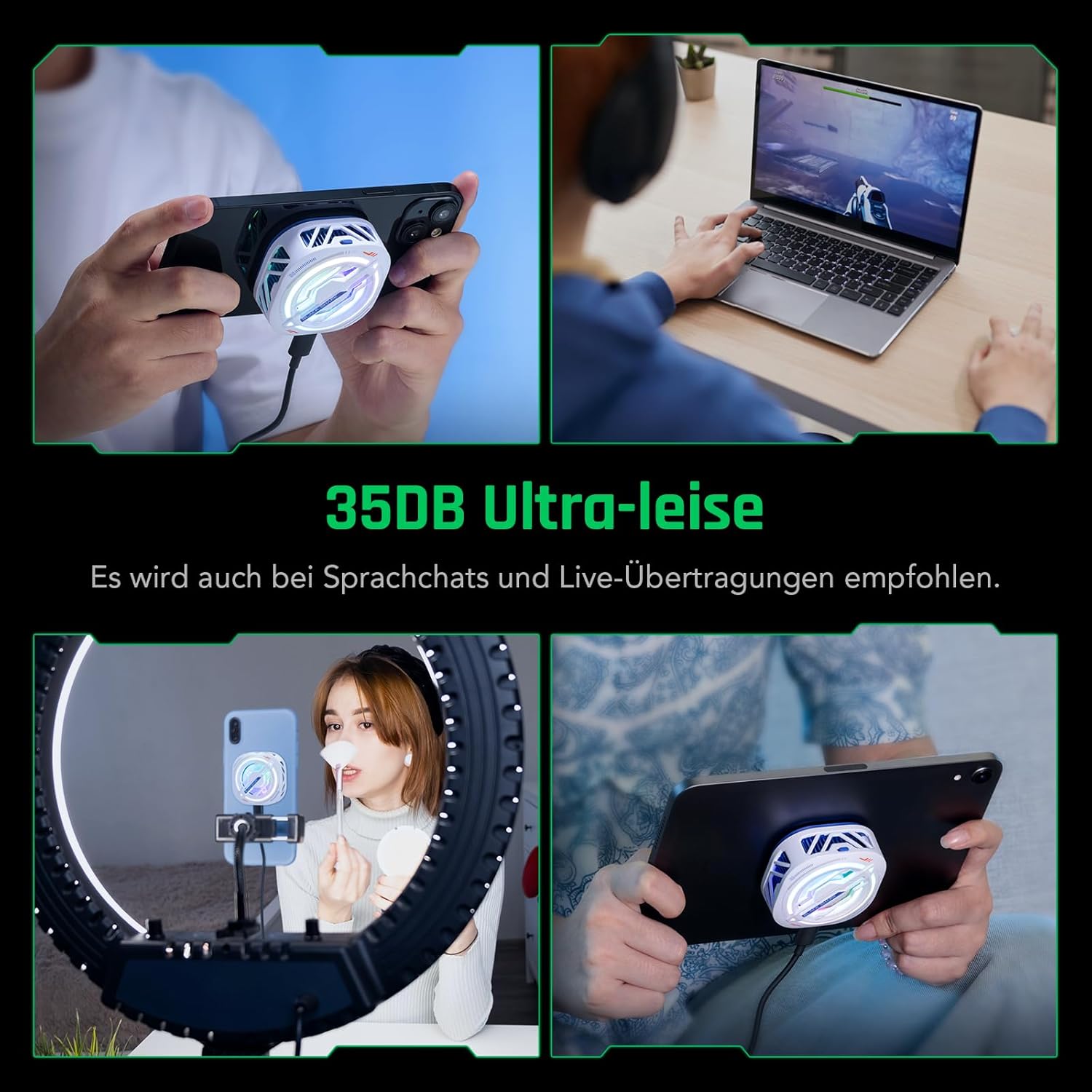 - Universelle Kompatibilität: Das Kühler-Geräuschreduzierungsdesign und kaum Geräusche während des Gebrauchs. Kompatibel mit Android-Smartphones/iPhones/Switches/iPads/Laptops usw. Ausser für iPhone 12 ~ 14 Serie mit MagSafe benötigen andere Geräte