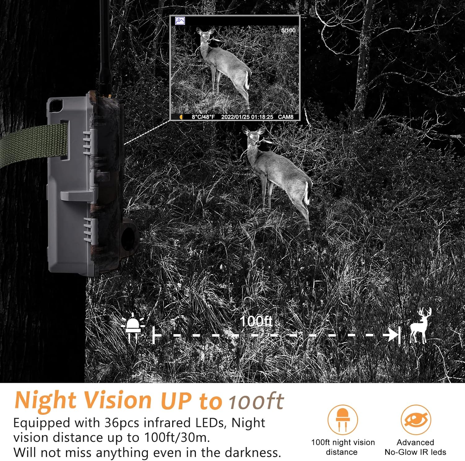 - Unzählige Einsatzmöglichkeiten: Ob als Jagdkamera, Gartenkamera, Wildkamera, Vogelkamera, auf der Baustelle oder zur Überwachung. Der A390G-DEU LTE verfügt über eine hervorragende Nachtsicht, 940 nm Non-Glow-Infrarottechnologie, einschliesslich adaptiver Beleuchtungstechnologie, um Überbelichtung oder Überdimmung zu vermeiden, und bietet eine bessere Nachtsicht bis zu 30 m
