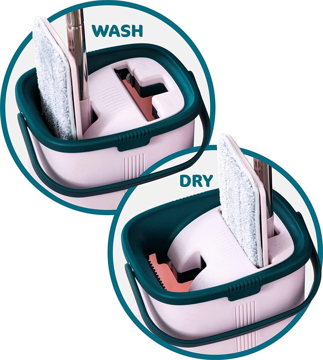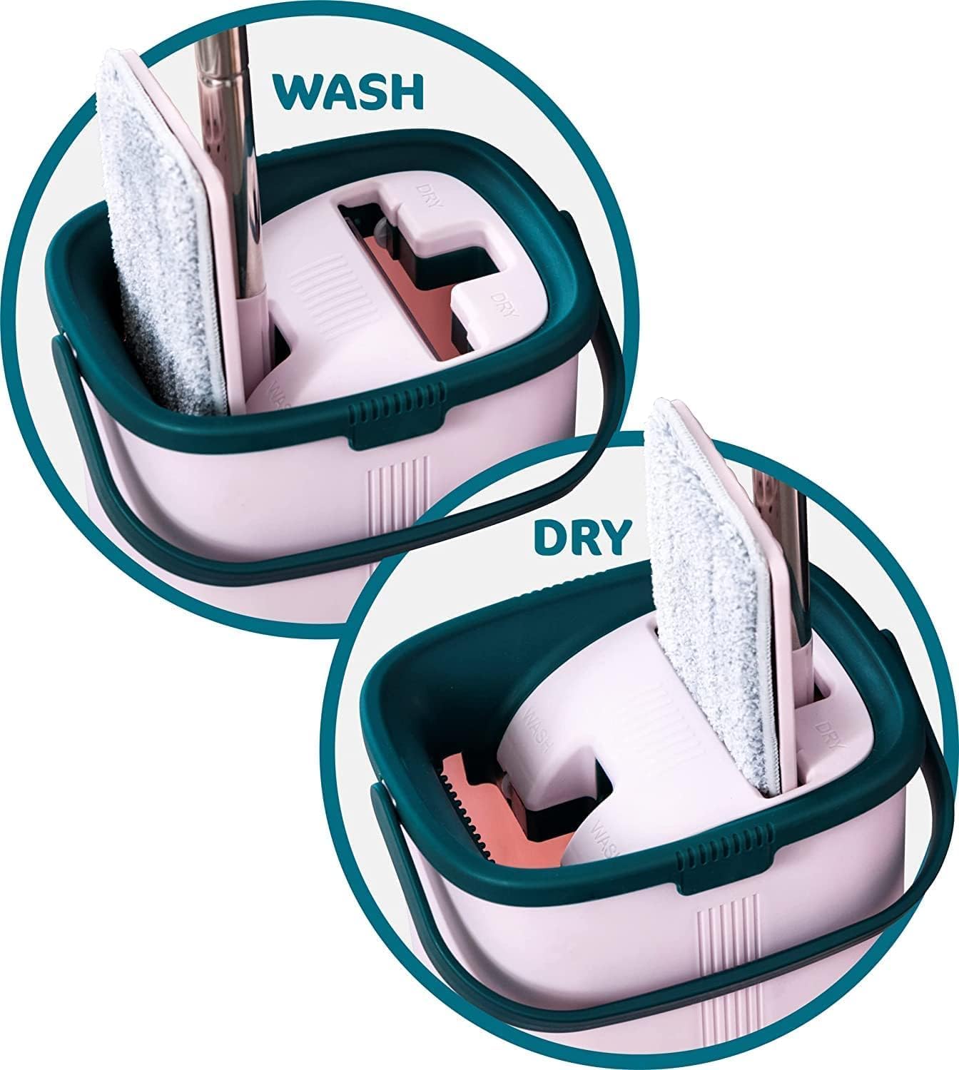 - Innovativ - Das Auspress, und Spülsystem, das wir in das Wischmopp Set mit Eimer eingebaut haben, ermöglicht es Ihnen, alles mit einer Hand zu erledigen; Kein Einweichen und Verschmutzen der Hände mehr