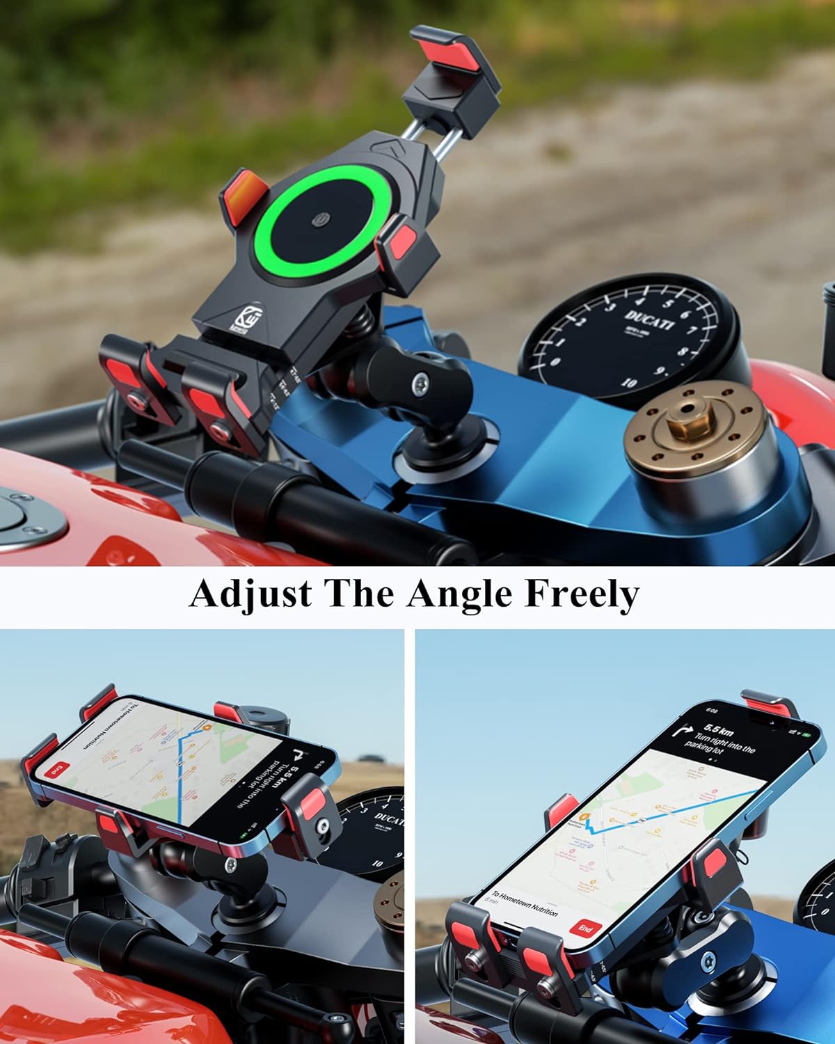- [ Kabelloses Laden ] Die Motorrad-Telefonhalterung mit kabellosem Qi 15W-Ladegerät. Kompatibel mit allen Qi 15W / 10W / 7,5W / 5W kabellosen Lademodi auf dem Markt. Eingang: DC 12 V. IP66 wasserdicht.