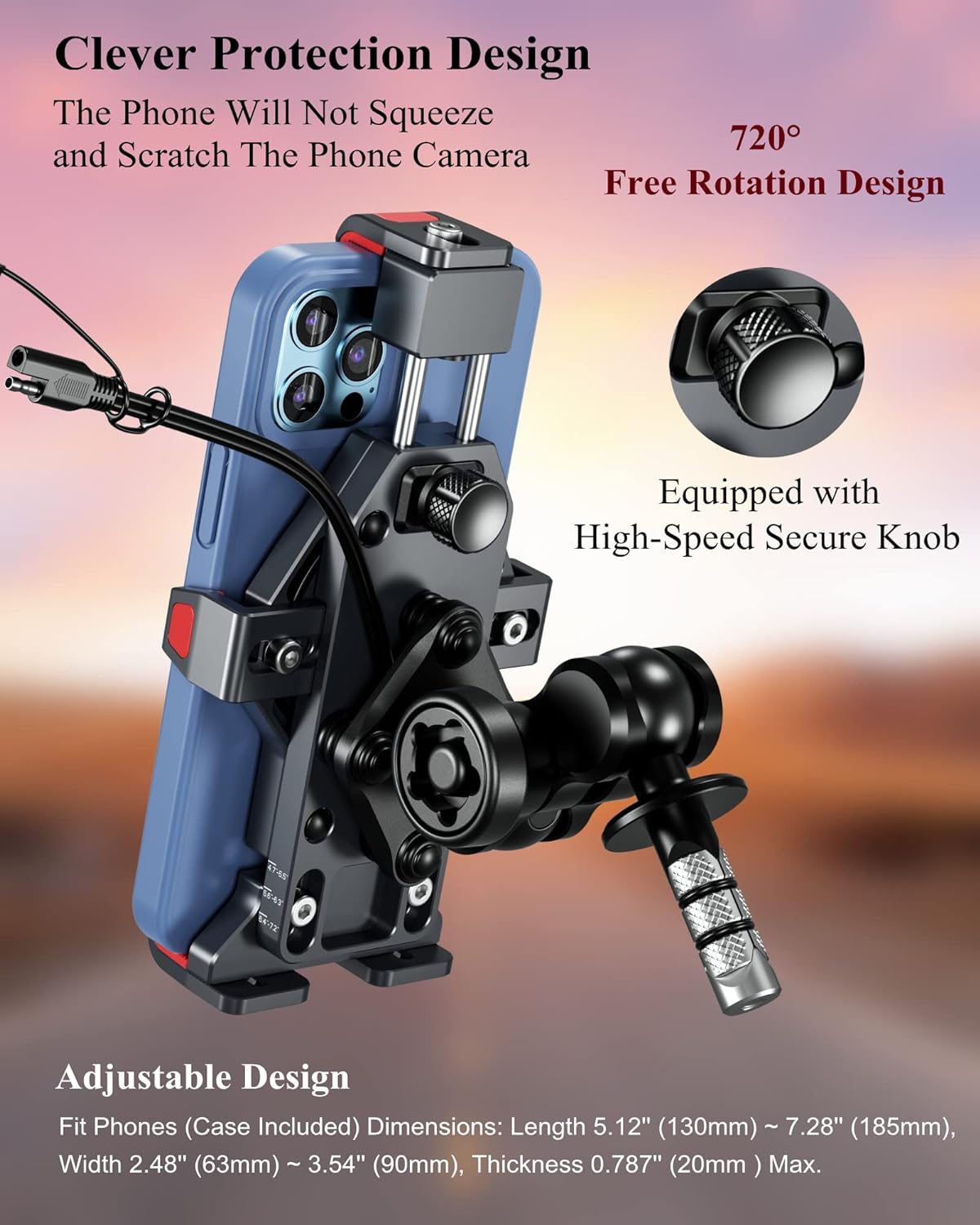 - [ Design des schützenden Telefonhalters ] Dieses Motorrad-Telefonhalter-Set ist mit einer Montagebasis aus Aluminiumlegierung und einem Kugelklemmarm aus Aluminiumlegierung konfiguriert. Sie sind alle mit speziellen Anti-Diebstahl-Schrauben