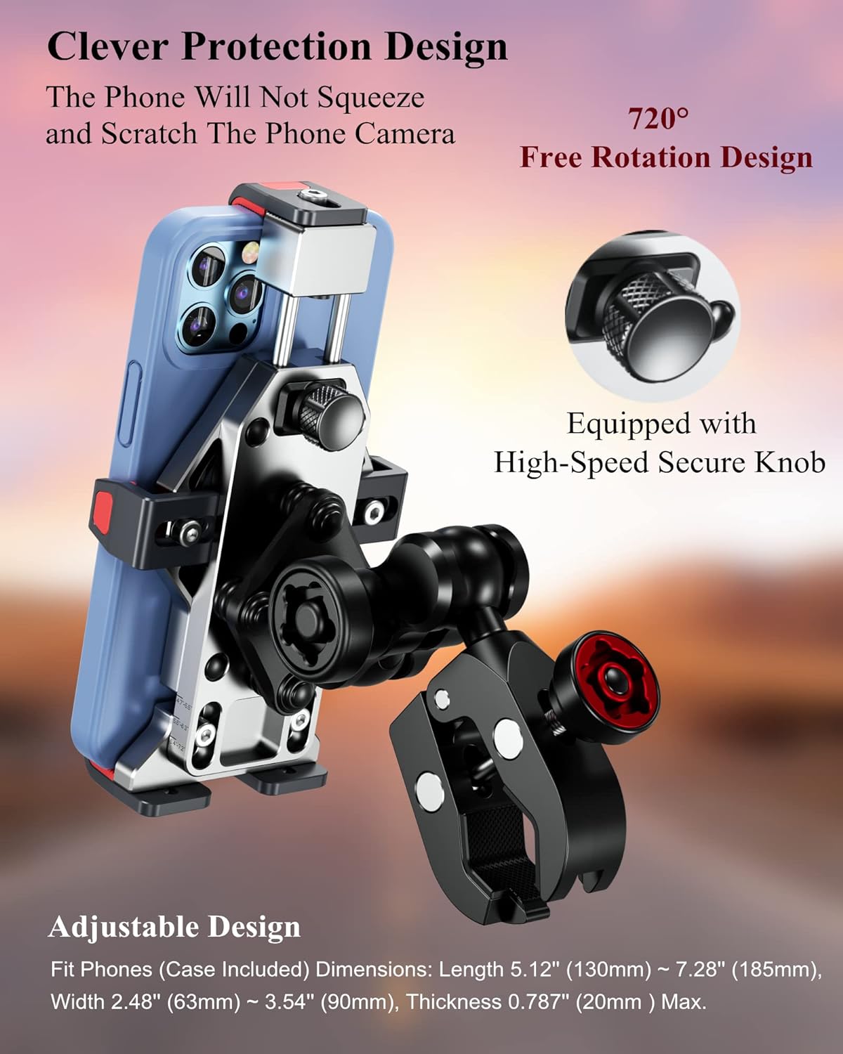 - [Robust, stossfest, schützt die Telefonkamera] Der Hauptkörper dieser Motorrad-Telefonhalterung besteht aus 6061-T6-Aluminiumlegierungsmaterial, CNC-Bearbeitung und -Formgebung, oberflächeneloxiert, langlebig und zuverlässig in den anspruchsvollsten