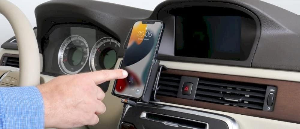 - Der Gerätehalter verfügt über eine aktive Ladefunktion, die über die 12V Steckdose des Fahrzeugs betrieben werden kann. Das Adapterkabel für den 12V Zigarettenanzünder sind standardmüssig in der Liefer