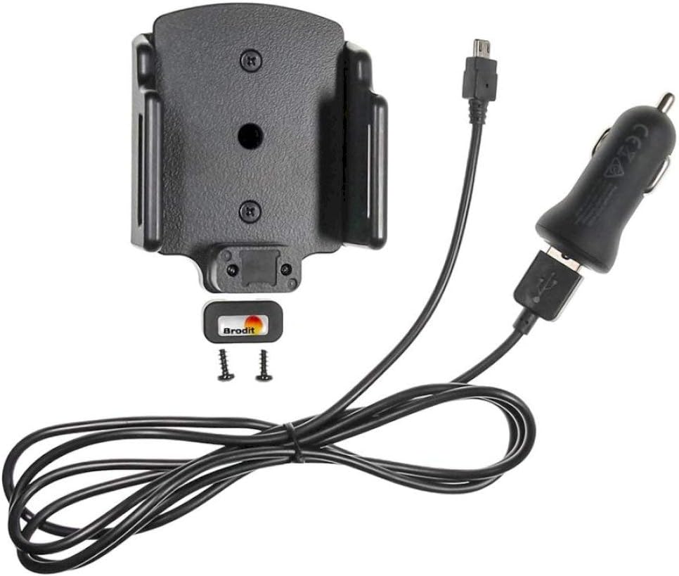 - Der Brodit Gerätehaltehalter 521620 Einstellbar Halterung mit Micro-USB Stecker. Passt für Geräte mit und ohne Skin mit folgenden Dimensionen: Breite: 62-77 mm, Dicke: 6-10 mm. 2,1A Ladung. 12/24V. Mit Kugelgelenk. mit Ladefunktion ist passend für