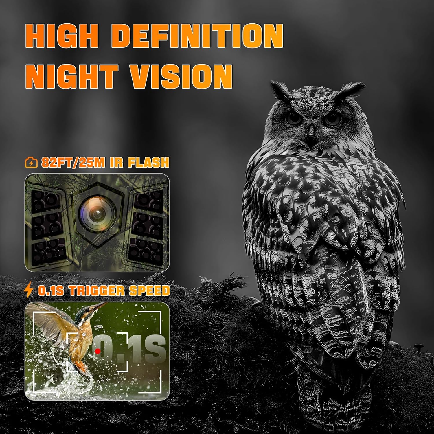 - 【Schnelle Reaktion, Umfassende Erfassung】Unsere Wildtierkamera verfügt über eine blitzschnelle Auslösegeschwindigkeit von 0,1 Sekunden, sodass Sie keinen wichtigen Moment verpassen, sei es ein sich schnell bewegendes Ziel oder eine plötzlich