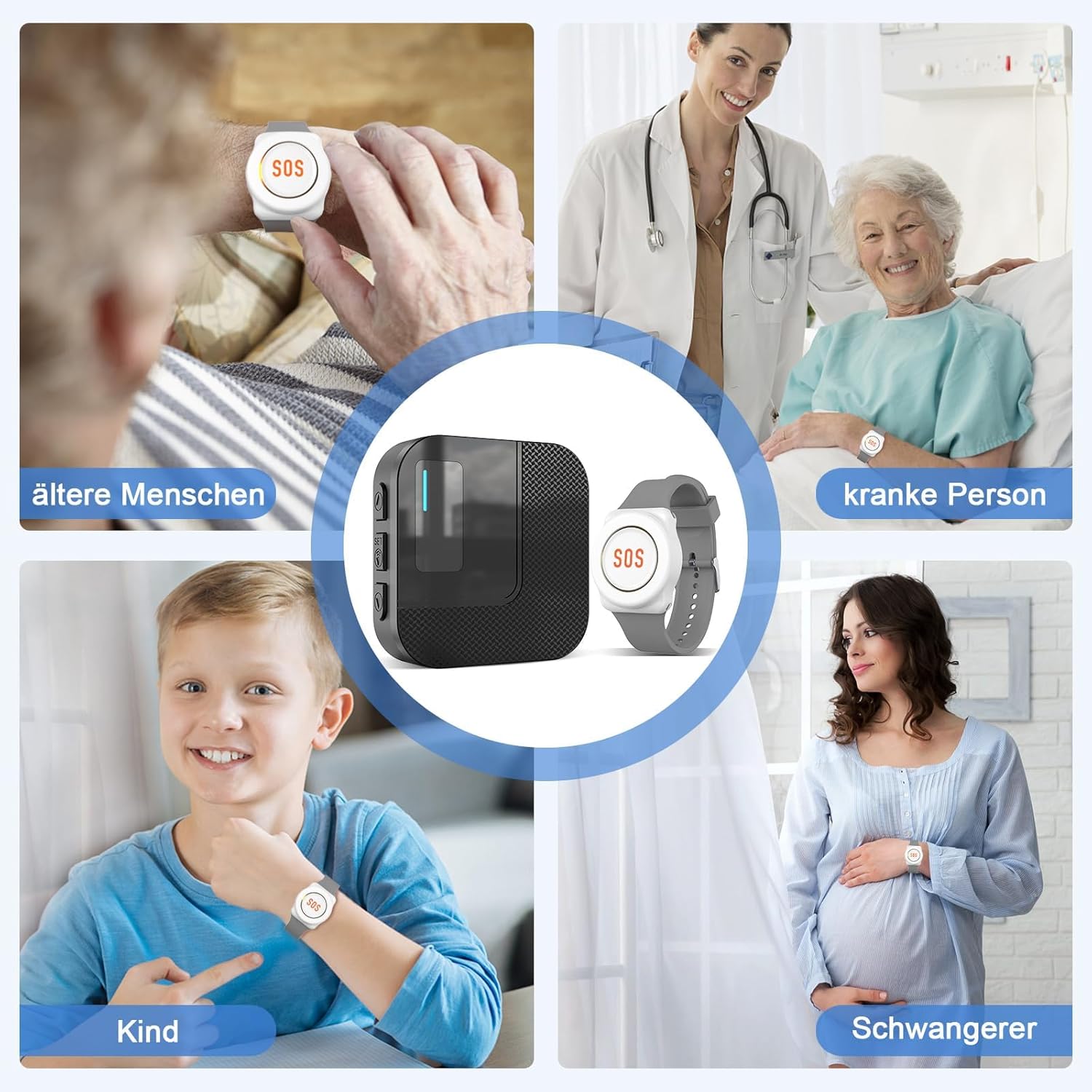 - SKALIERBAR: Unterstützung der Erweiterung, Sie können mehr Hubs oder Ruftasten hinzufügen, um die Bedürfnisse der verschiedenen Nutzungsszenarien zu erfüllen. Kann für Senioren zu Hause, Pflegeheim, Krankenhaus, Klinik, etc. verwendet werden.