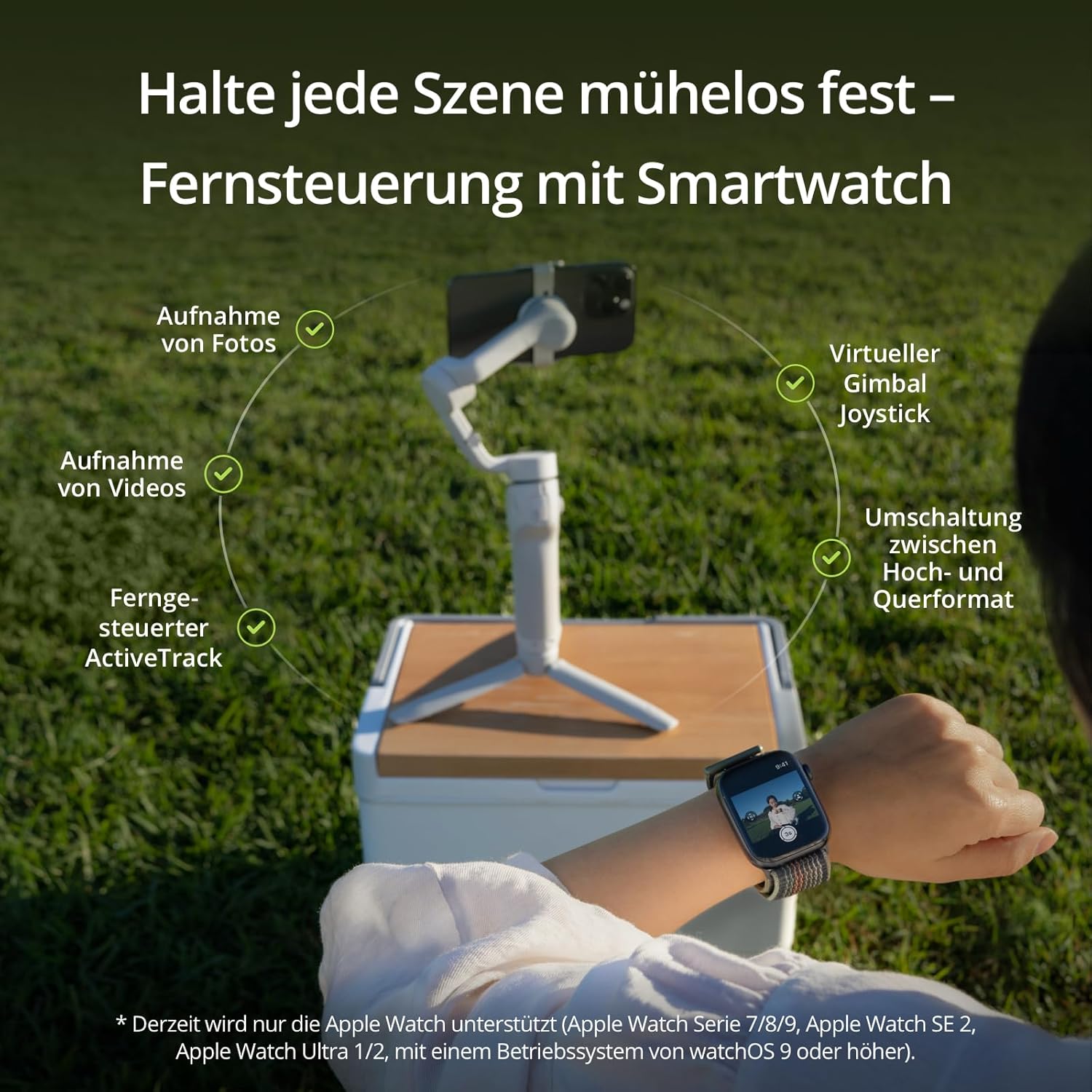 - Leicht, kompakt und ausklappbar – Der faltbare Gimbal-Stabilisator für Mobiltelefone wiegt nur 309 Gramm und lässt sich problemlos überallhin mitnehmen. Mit dem ausziehbaren Verlängerungsstab sind Ihrer Kreativität keine Grenzen gesetzt.