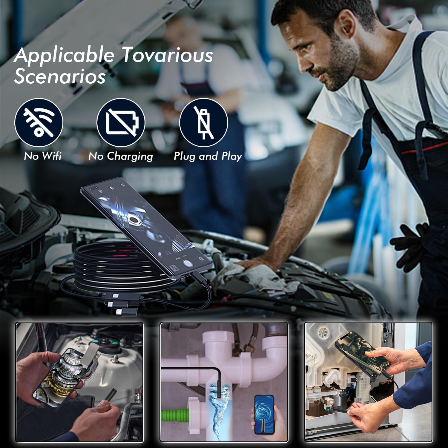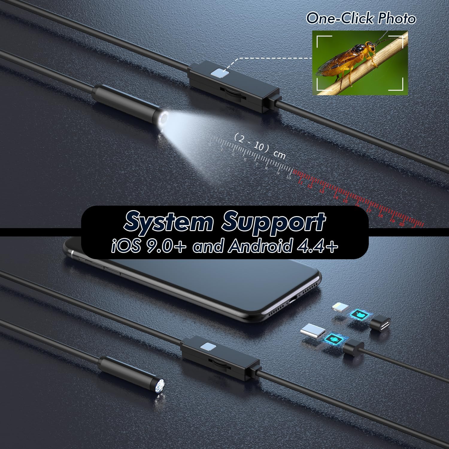 - Endoskopkamera mit Licht 10M, AOPICK 1080P HD Endoskop-Kamera Handy Wasserdichtes Ip67 Kein WLAN Erforderlich Inspektionskamera Kanal-Kamera Handy mit 8 LED Licht für Android & iOS, Tablet 32.8ft/10M